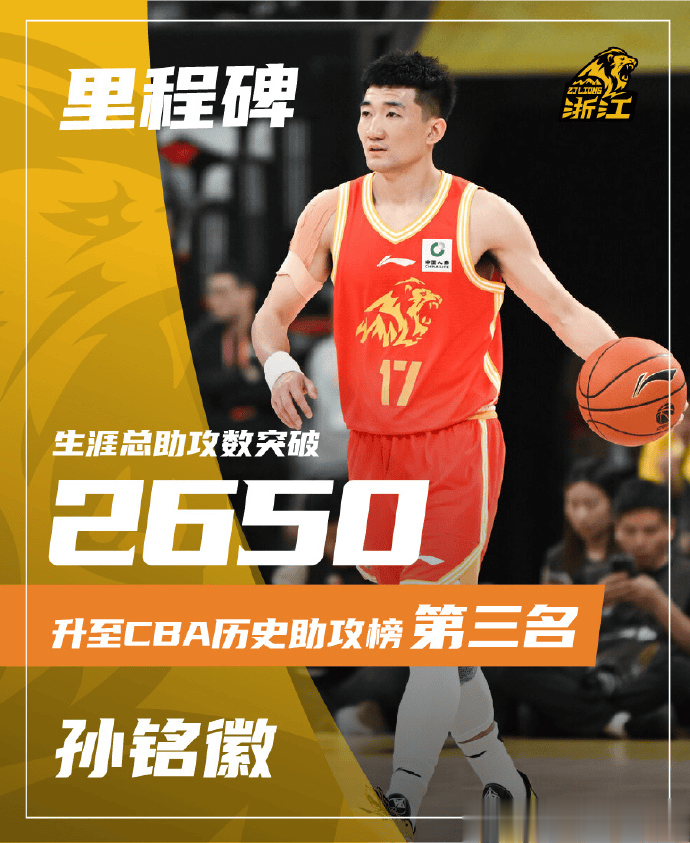配文:随着吴骁篮下命中,主力后卫孙铭徽个人生涯总助攻突破2650,超越郭艾伦升至CBA历史助攻榜第三名。