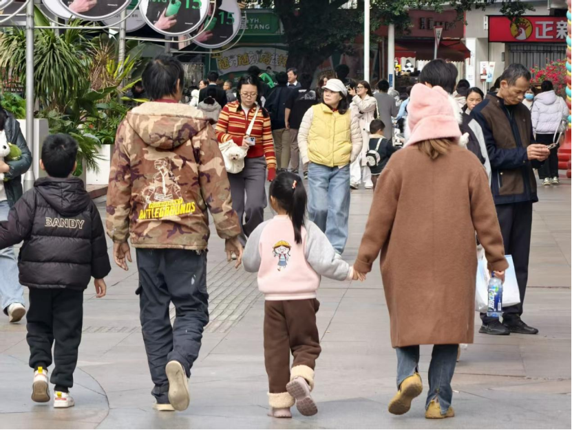 天气寒冷,街上的行人都穿上了冬装。