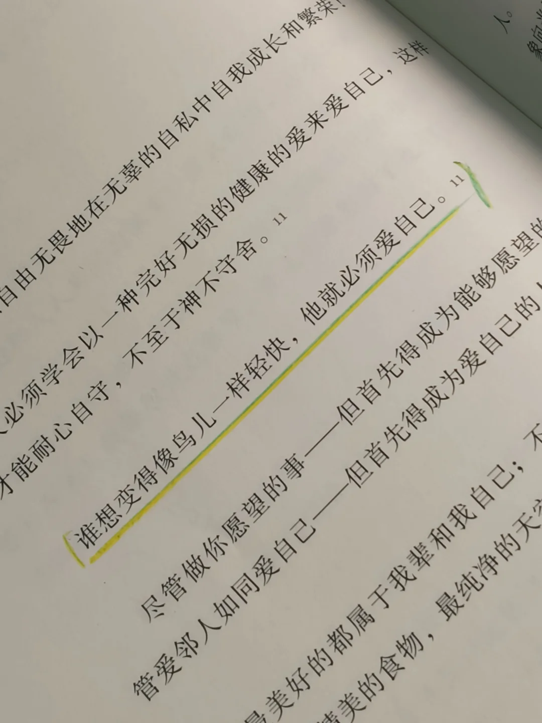 “谁想变得像鸟儿一样轻快,他就必须爱自己。“