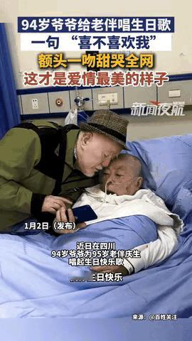 看哭了!四川一94岁爷爷为95岁老伴庆生,唱起生日快乐歌,突然问了一句:70年了,你喜不喜欢我?老伴躺在病床上,虽然插着呼吸机,但还是给予了回应:我喜欢!听到这话后,爷爷轻轻吻上老伴额头,这一吻甜哭全网,这份真挚浓烈的爱情,让网友直呼泪目!网友:这才是爱情最美的样子 四川大学华西医院的病房里,消毒水的味道被一股淡淡的奶油香冲淡了些。94岁的周爷爷坐在病床边,手里捧着个巴掌大的蛋糕,烛火在他布满皱纹的脸上跳着,映得那双浑浊的眼睛亮闪闪的。病床上的老伴张奶奶插着呼吸机,氧气管从鼻孔延伸出来,盖住了半张脸,只有银发在枕头上铺得整整齐齐。 今天是张奶奶95岁生日。周爷爷凌晨四点就醒了,攥着护士给的蛋糕券,在医院走廊里慢慢挪了两趟,才想起来该怎么给老伴庆生。他轻轻握住奶奶的手,那只手背上布满老年斑,指关节因为常年劳作有些变形,此刻却被他用掌心焐得暖暖的。 “老太婆,唱歌了哦。”周爷爷清了清嗓子,喉结动了动,像是在酝酿什么重要的仪式。旁边的护工小王举着手机录像,镜头里,爷爷的背有点驼,蓝白条纹的病号服袖口卷着,露出小臂上松弛的皮肤,可他坐得笔直,眼睛一眨不眨地盯着病床上的人。 “祝你生日快乐……”他开口时,声音沙哑得像被砂纸磨过,调子有点跑,却一字一句都透着认真。唱到“祝你幸福”时,他突然顿了顿,像是想起了什么,眼角的皱纹堆得更密了——70年前在乡下的土坯房里,他也是这样,对着刚过门的她唱跑调的歌,那时她梳着两条粗辫子,笑他“比田里的青蛙叫得还难听”。 蛋糕上的烛火晃了晃,周爷爷唱完最后一句,没吹蜡烛,反而俯下身,凑近奶奶的耳边。他的白胡子蹭到奶奶的脸颊,像蒲公英的绒毛在搔痒。“老太婆,”他的声音轻得像叹息,“70年了,你……喜不喜欢我?” 病房里静得能听见呼吸机的“呼呼”声。护工小王的心跳突然漏了一拍,她照顾这对老夫妻半年了,知道张奶奶这半个月意识时好时坏,有时连家人都认不清。她捏着手机的手紧了紧,生怕这声问话石沉大海。 就在这时,张奶奶的手动了动。不是无意识的抽搐,是很轻很轻地,回握了一下周爷爷的手。接着,她的嘴唇在氧气管下动了动,发出微弱的气音,像春蚕在啃桑叶:“我……喜欢……” 三个字,气若游丝,却像惊雷落在周爷爷心上。他猛地直起身子,眼眶一下子红了,浑浊的眼泪顺着皱纹往下淌,滴在奶奶的手背上,温热的。他抬起另一只手,颤巍巍地拂开奶奶额前的碎发,然后俯下身,在她布满老年斑的额头上,轻轻印下一个吻。 那吻轻得像羽毛,却重得像70年的光阴。从1953年在玉米地里偷偷拉钩,说“要一辈子在一块儿”,到后来饥荒年分着吃一个红薯,再到搬进城里带大三个孩子,最后一起住进医院,每天隔着病床说说话……那些日子像电影一样在眼前过,苦的甜的,都酿成了此刻的眼泪。 护工小王别过脸,偷偷抹了把眼泪。手机屏幕里,烛火还在跳,周爷爷还握着奶奶的手,嘴里絮絮叨叨地说:“我就知道你喜欢我……当年你娘还说我穷,你非跟我走……” 后来这段视频被发到网上,评论区里挤满了眼泪。有人说“这才是爱情”,有人说“原来真的有人能爱到牙齿掉光”。可对周爷爷来说,哪有什么惊天动地的爱情?不过是年轻时看对了眼,然后用70年的日子,把“喜欢”两个字,熬成了刻在骨头里的习惯。 那天下午,周爷爷给奶奶喂了点融化的蛋糕糊,看着她在呼吸机的帮助下慢慢睡着,才悄悄起身。走到病房门口时,他回头望了一眼,阳光透过窗户落在奶奶的银发上,像撒了层碎金。他摸了摸自己的额头,那里好像还留着刚才吻她时,她头发的温度。 原来最好的爱情,从不是年轻时的轰轰烈烈,是老了躺在病床上,还能清清楚楚地说一句“我喜欢”,是吻过无数次的额头,到了第九十五个春天,依旧滚烫。