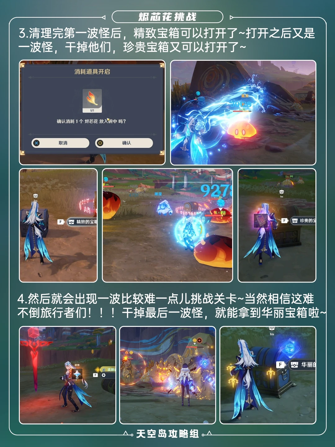可获得1华丽+1珍贵+1精致宝箱[哇R] 1⃣️传送至p2地点,走到最边上能看到三个宝箱 2⃣️提交烬芯花 3⃣️记得换针对火深渊法师和火史莱姆的队伍