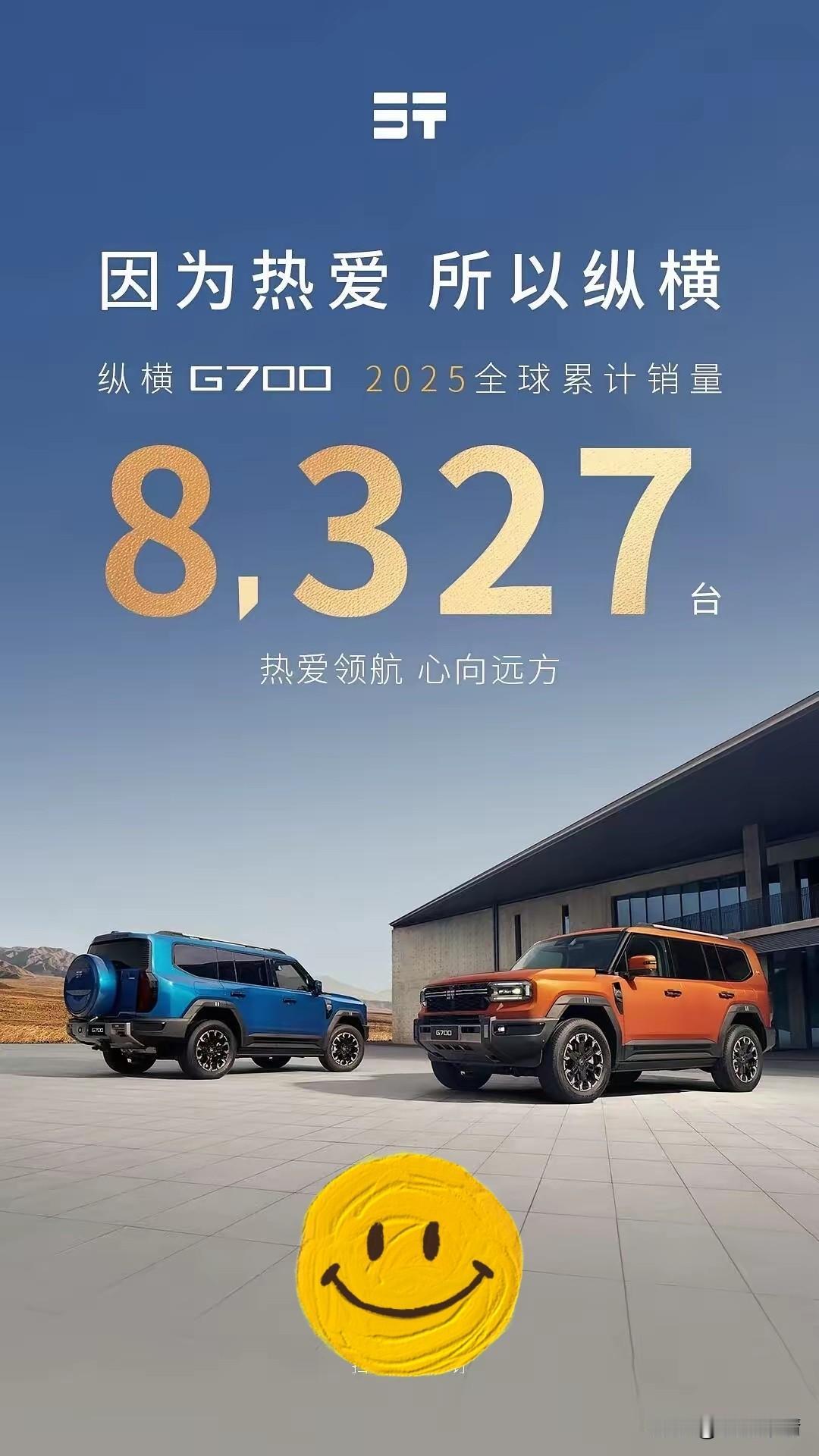 奇瑞高端成了?! 奇瑞纵横发布了G700年度销量,上市两个月的G700销量8327辆。 奇瑞纵横G700算是2025年度非常重磅的硬派越野新车,也是奇瑞冲击高端的代表车型,11月交出了4232辆的成绩;12月卖了4095辆。 这么来看,奇瑞高端成了?! 你怎么认为呢?