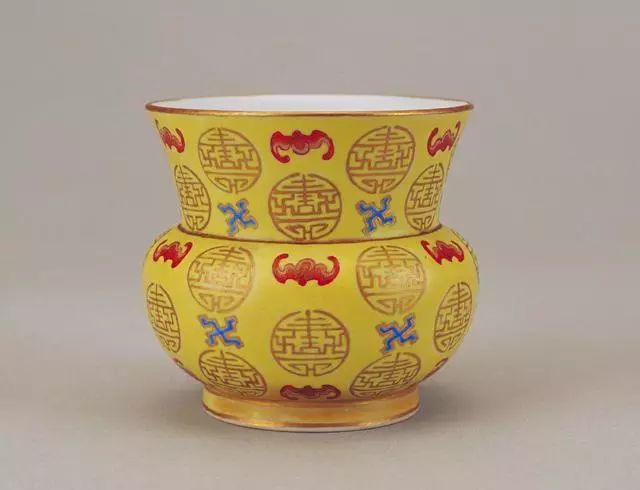 清同治黄地红蝠金彩团“寿”字渣斗 - 北京故宫博物院馆藏