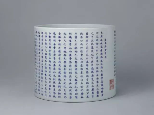 清康熙青花釉里红“圣主得贤臣颂”文笔筒 - 北京故宫博物院馆藏