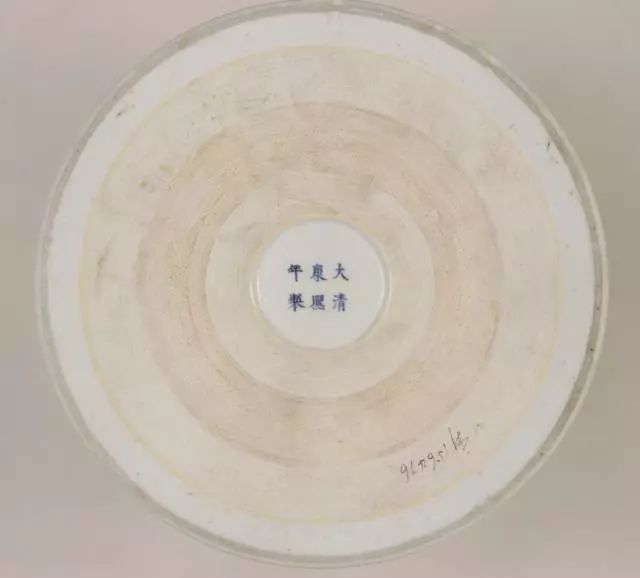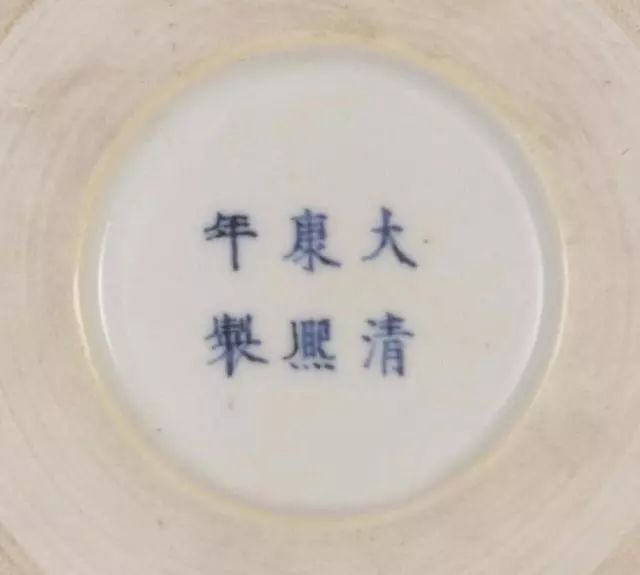 4.清圣祖玄烨 - 康熙 【1661 - 1722年 61年】康熙朝历时61年,款识较多。其官窑款多为“大清康熙年制”六字两行或三行青花楷书款,晚期有少量篆书款。前期常见干支纪年款,如“康熙辛亥中和堂制”等。如“大清丁未年制”,是康熙六年的瓷器。珐琅彩器上书“康熙御制”四字楷书料款。其字体前期宽大,笔划粗重挺拔,顿捺明显。后期字体清秀,在具体写法上也有细微区别,如熙字四点多为直点或顺点,少逆点。年字三横前二横较短,第三横较长,且紧紧上靠,一竖较长。款字外饰有单圈、双圈、双正方框等。康熙民窑款识更为多种多样,有图记款,如秋叶、角、爵、方胜、杂宝,还有寓意性图案,如一枝笔、银锭、如意组合为必(笔)、定(锭)、如意等。私家款如“杏林春宴”、“北庆堂”、“益友堂”、“若深珍藏”等。有光画双圈,不写字的双圈款。还有“文章山斗”之类的闲章款。仿前朝的寄托款,以仿嘉靖款居多。