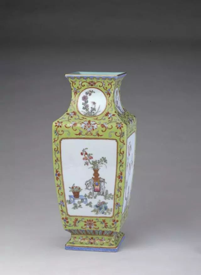 清咸丰绿地粉彩开光花鸟纹方瓶 - 北京故宫博物院馆藏