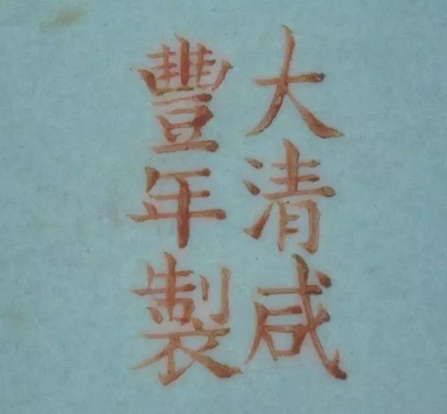 矾红彩楷书“大清咸丰年制”双行六字款
