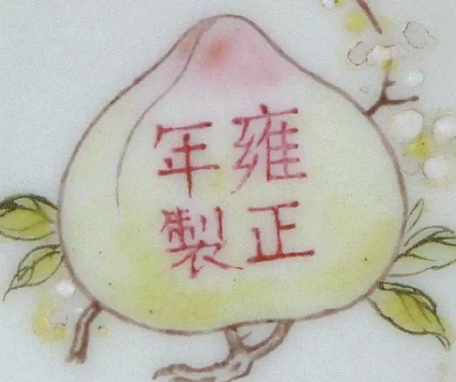 款识放大图5.清世宗胤禛 - 雍正 【1722 - 1735年 13年】雍正官窑款主要是“大清雍正年制”六字两行楷书青花双圈款,也有双方框款,其次是多用于单色釉瓷上的三行六字篆书款。从字体上分析,雍正款识由专人题写,所以各类瓷器上的字体大致相同。楷书款早期为三行双圈,晚期为双行双圈或双框。“雍正年制”四字篆书刻款主要用在仿均、炉均和茶叶末等器物上。“雍正年制”或“雍正御制”四字楷书堆料款仅用于珐琅彩瓷。雍正细路民窑器大多数落各种堂名款,如“正谊书屋”、“百一山房”、“澹宁堂”、“望吟阁”等,一般民窑器款则复杂多样,如用灵芝、香炉、团花款、方块款、豆腐干款、四朵花款等。