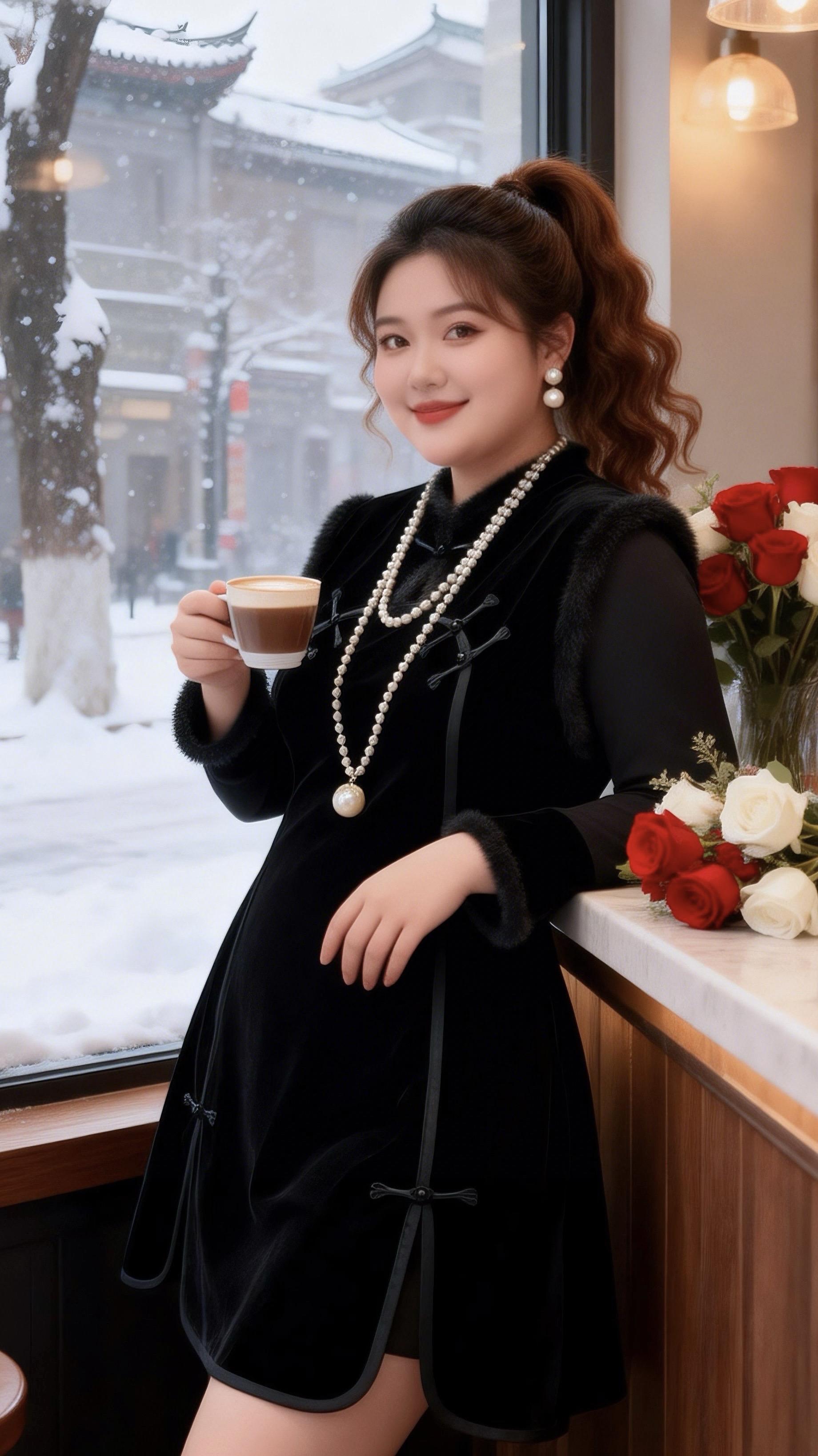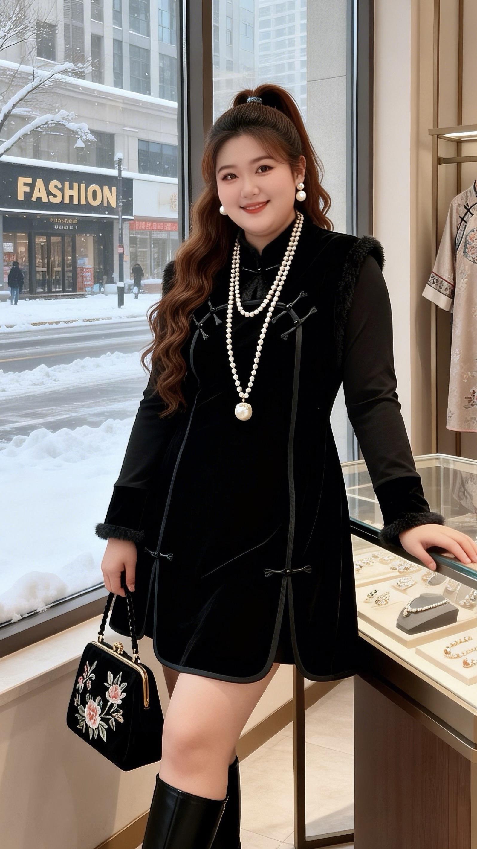 大码女装 新中式穿搭 旗袍裙让人眼前一亮的跨年约会穿搭脱下外套也体面的秋冬内搭