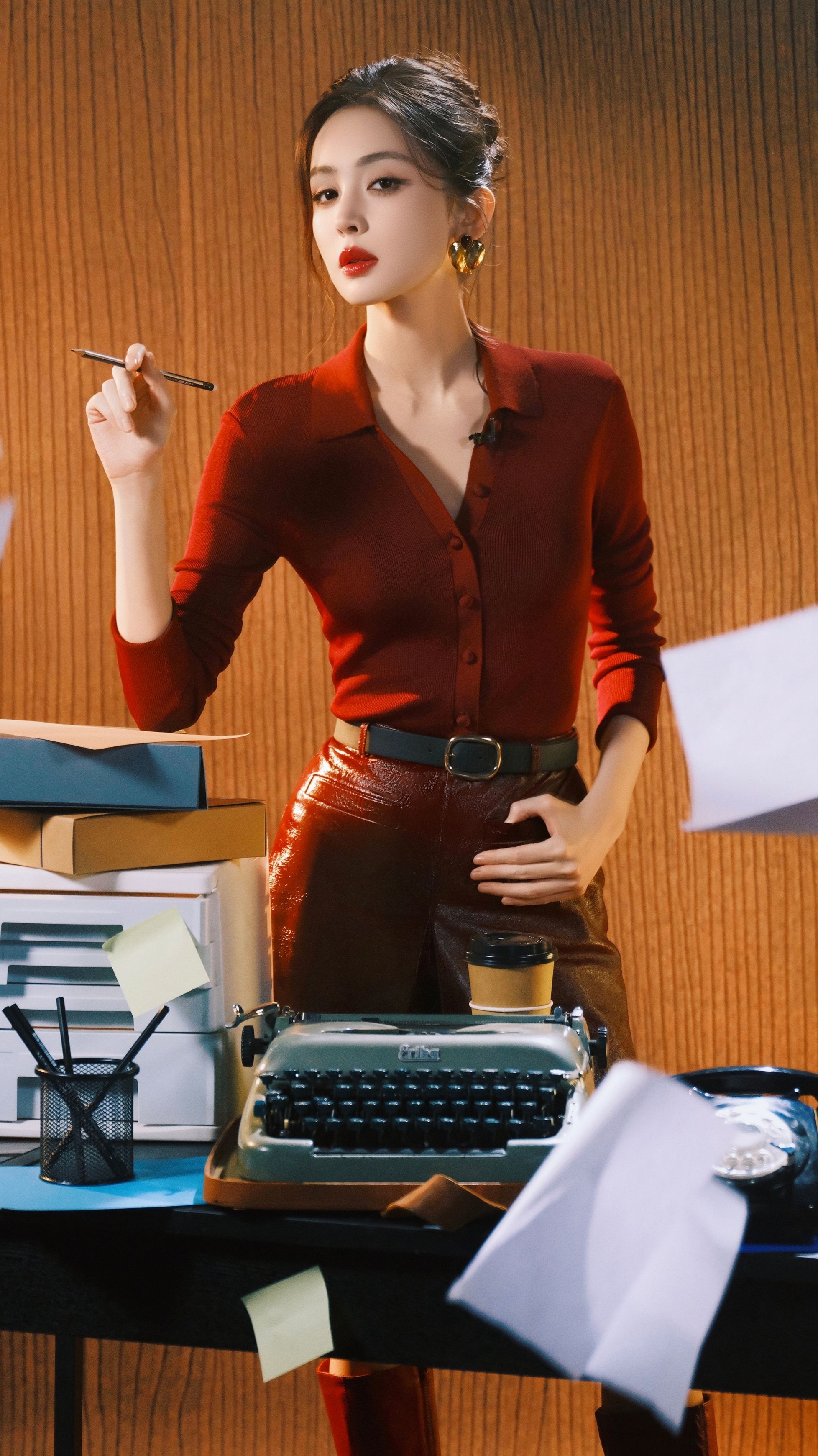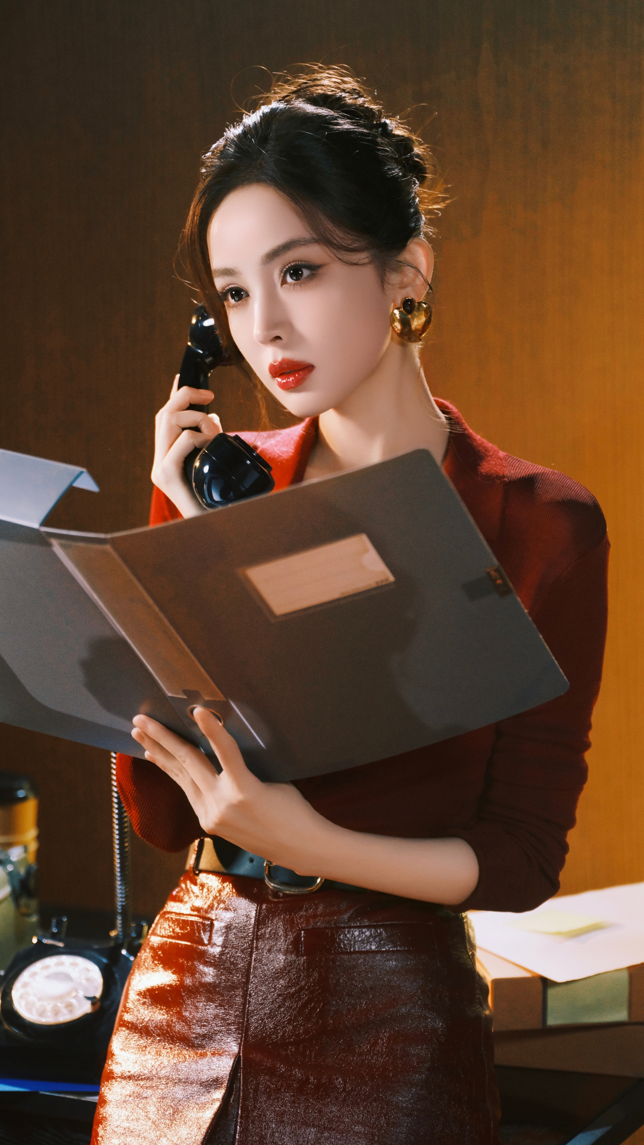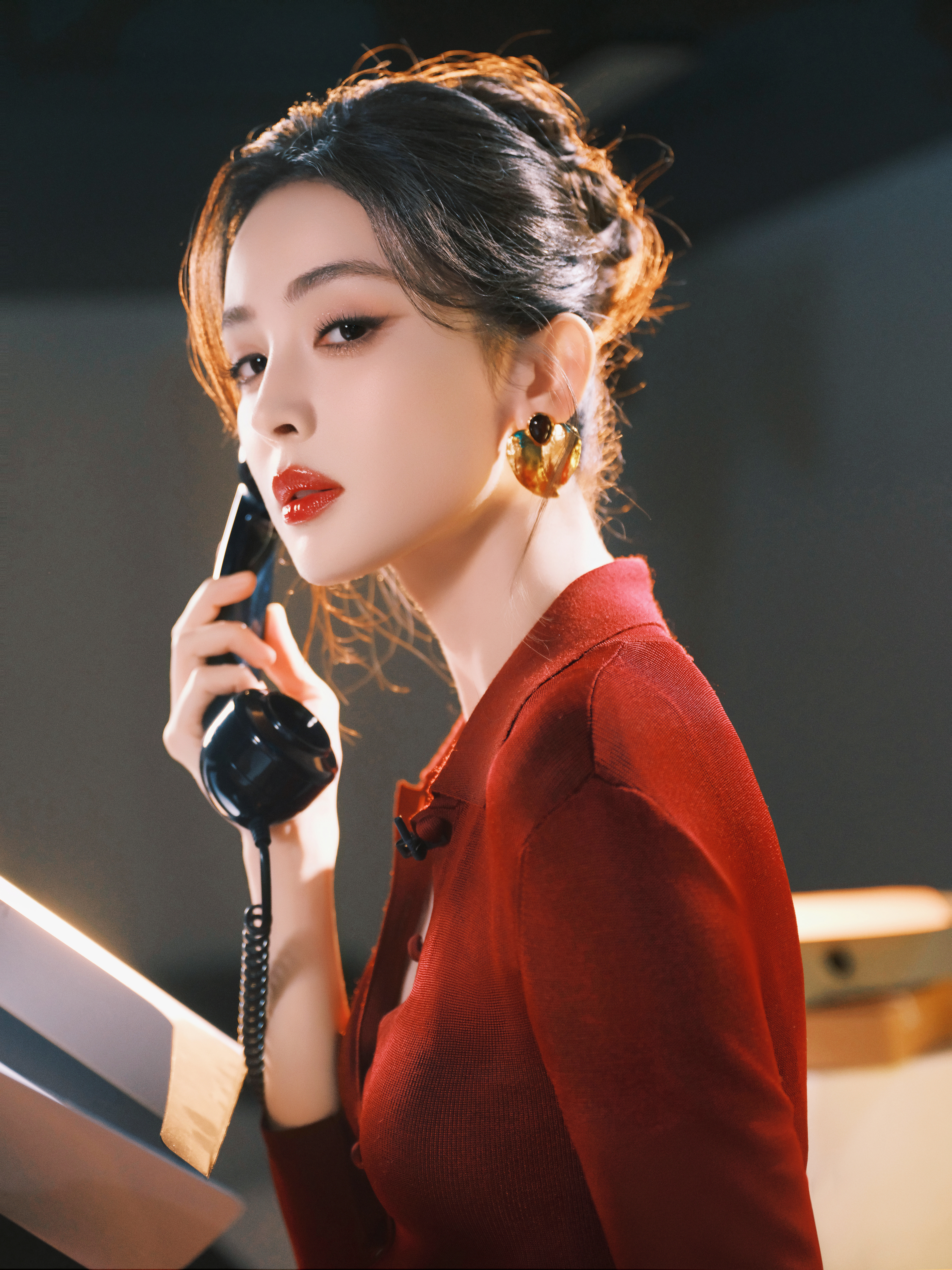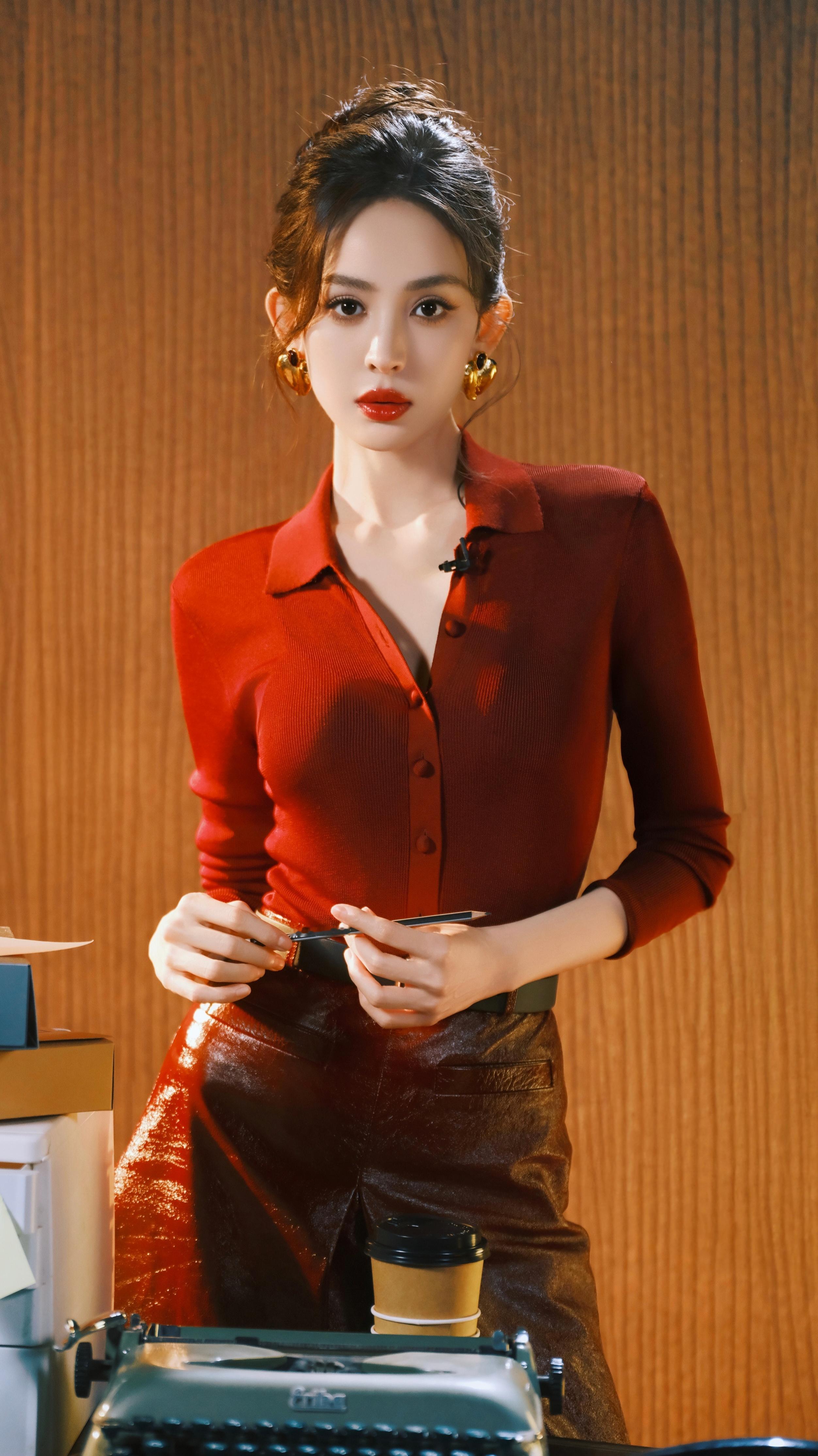 娜扎给自己看进去了娜扎新年首期好六夜造型美娜穿红色美美的很安心