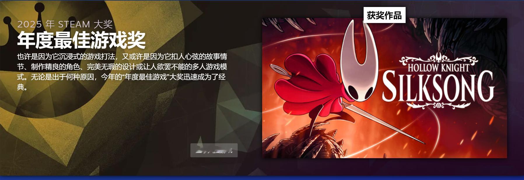【《空洞骑士:丝之歌》年度最佳!Steam大奖名单揭晓】V社公布了2025 St