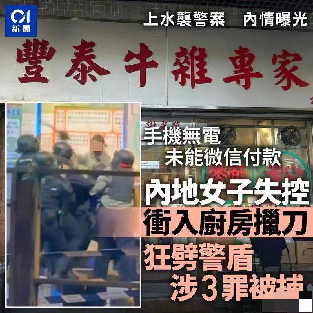 内地女游客持刀大闹香港茶餐厅,因付款问题和餐厅老板发生矛盾。她在餐厅消费,却手机没电无法付款,估计手上现金不够,和餐厅商量过程中发生争执,可能老板言语刺激了她,女子突然情绪激动,冲到厨房抢了一把菜刀,挥舞乱砍。店家不得不报警,警察来了,女子依然大声咆哮,甚至拿剪刀和警盾对质,最终被制服,这下估计要在香港局子里蹲几年了。