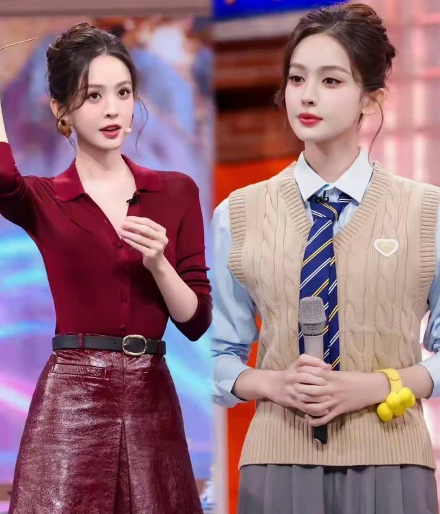娜扎《你好星期六》造型杀疯了!红装御姐切换学院风美到失语