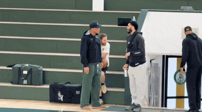 凯尔特人记者NoaDalzell报道,在当地时间今日上午凯尔特人的投篮训练时,前快船球员、也效力过凯尔特人的布雷克-格里芬也来到训练馆,与杰森-塔图姆进行了交谈。