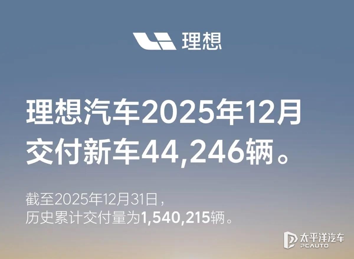 2025年最后一个月,理想直接把交付干到44246辆[666]! Q4累计109