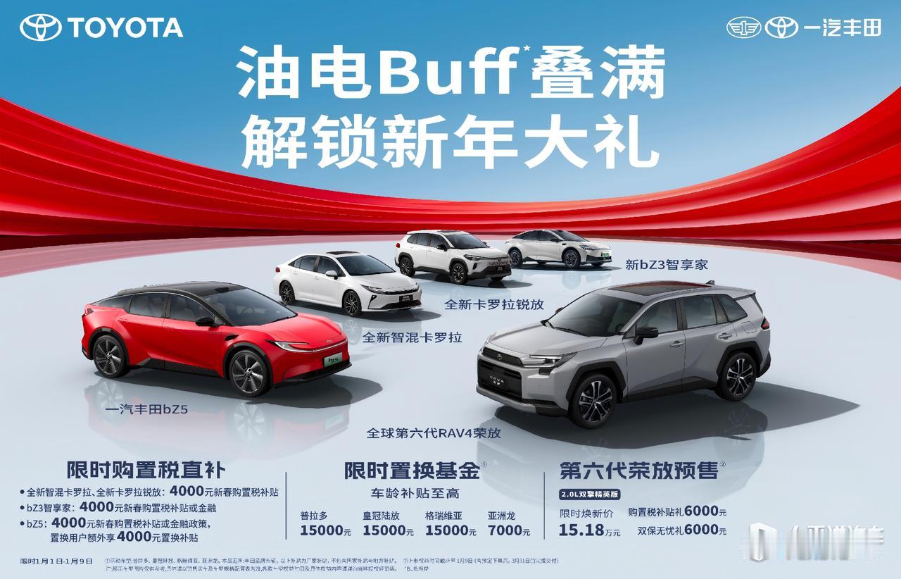 一汽丰田全年狂卖805518辆,连续三年正增长,成主流合资里少数“逆市飘红”的狠角色[酷] ▸ 高端化立大功:TNGA-K平台以上车型卖了487426辆,占比飙升至61%(同比+12%)——每卖5辆就有3辆是高价值车型; ▸ 混动才是硬道理:智能电混双擎车型380100辆,占比47%(同比+14%),相当于每2辆丰田车就有1辆“喝油少、跑得远”; ▸ 王牌车型稳如老狗:RAV4荣放204272辆(+6%),继续霸榜紧凑SUV,亚洲龙126703辆(+39%),皇冠陆放59902辆(+14%),高端SUV地位稳得一批。 新年福利更狠: 1.1-1.9期间,全新智混卡罗拉、bZ3等享4000元购置税补贴,普拉多/皇冠陆放等置换至高1.5万; 最炸的是第六代全新荣放2.0L双擎精英版,限时焕新价15.18万,全系再加购置税补贴+双保无忧各6000元 合资品牌在新能源冲击下普遍“喊难”,一汽丰田靠高端+混动稳住增长,你觉得这模式能复制吗?