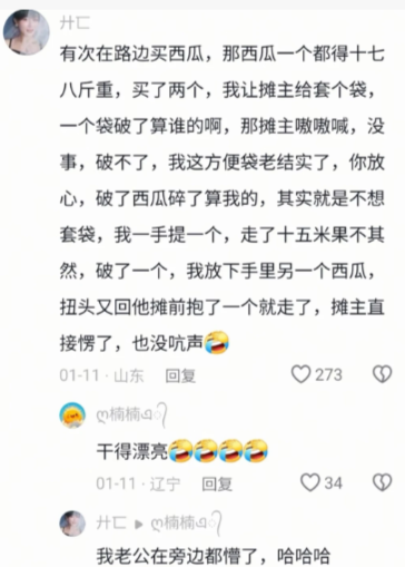 破了西瓜碎了算我的,其实就是不想套袋,我一手提一个,走了十五米果不其然,破了一个,我放下手里另一个西瓜,扭头又回他摊前抱了一个就走了,摊主直接愣了,也没吭声