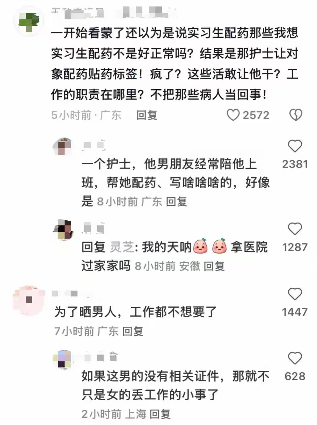女护士带男友值夜班进配药室"帮忙"?停职通报之下,更该追问管理漏洞! 1月3日,青岛市卫生健康委员会发布情况通报,明确网传"青岛某医院护士带男朋友进医院配药室"事宜属实:涉事护士系青岛圣德脑血管病医院职工,值班期间违反工作纪律,擅自将男朋友带入医院内二科病房区协助其工作,目前医院已对该护士作出停职处理,市卫生健康综合监督执法部门已介入调查,后续将依法依规对涉事医院和人员作出严肃处理 。通报中那句"医疗安全是保障患者生命健康的底线",更该成为所有医疗从业者的警钟。 可通报之外,这起事件的离谱程度仍让人脊背发凉。涉事护士不仅把穿便服、带纹身的男友领进医疗核心区域,还让毫无专业资质的他帮忙配药、贴输液标签、写护理报告,甚至在社交平台炫耀这是"夜班搭子" 。要知道,配药室是半无菌重点区域,医护人员进入都需换无菌服、经风淋消毒,操作要严格执行"三查七对",而这位护士却把关乎患者性命的医疗操作,当成了秀恩爱的工具。 更可怕的是背后暴露的管理失效。按照《医疗机构管理条例》,非卫生技术人员严禁从事医疗卫生技术工作 ,病房区作为限制性区域,也该执行"一人一证一准入"制度。可涉事男友能自由出入、上手操作,既无人阻拦也无监控预警,这样的管理漏洞,比护士的任性更让人不安。患者住院是为了求医问药,不是来承担"外行配药"的风险,一旦出现剂量错误、药品污染或交叉感染,后果不堪设想。 停职只是初步处理,公众更期待监管部门的后续调查能穿透表面:医院的门禁管理、值班监督为何形同虚设?日常的职业规范培训是否流于形式?只有把这些漏洞堵上,才能让"医疗安全底线"不只是一句口号。医疗行业的专业性容不得半点任性,每一次违规操作都可能危及生命,这从来都不是"个人纪律问题",而是对职业操守和患者权益的双重漠视。