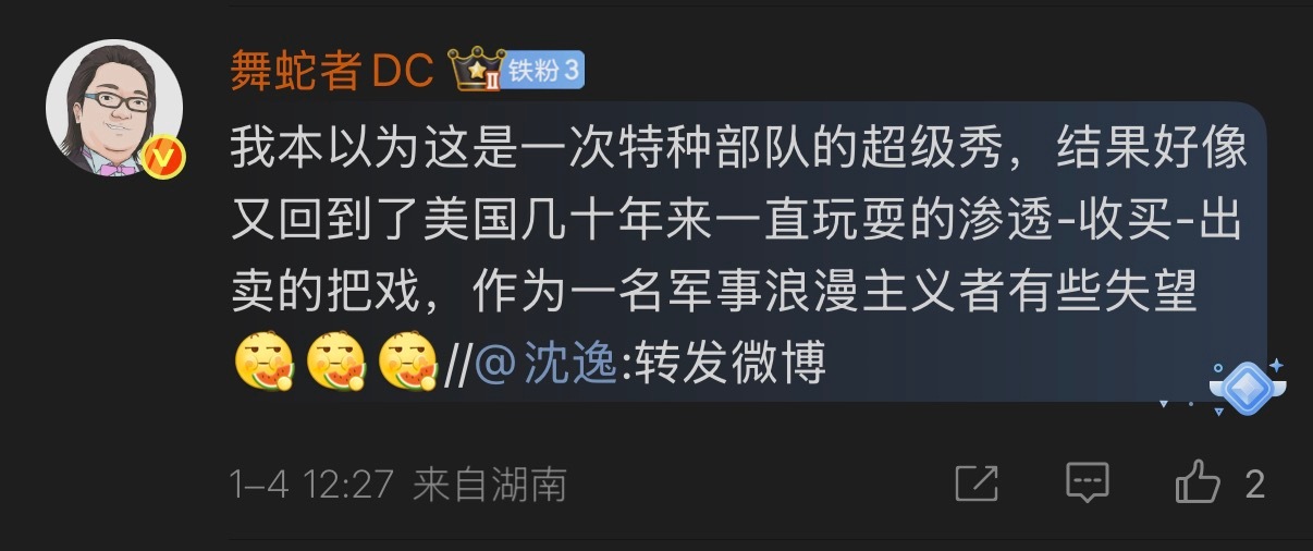🔻阿爷整治邻居开园区的难度其实远超美国抓走马杜罗。🔻有网友评论:“我本以为这是一次特种部队的超级秀,结果好像又回到了美国几十年来一直玩耍的渗透-收买-出卖的把戏,作为一名军事浪漫主义者有些失望。”🔻然而那个时候有些人说:这也能赢?🔻现在这些人还在说:这也能赢?🔻总之美国只许赢,美赢就是“中输”,美输就是“你完辣,你赢学入脑辣”。委内瑞拉副总统代行总统职权特朗普称美在西半球地位再不会被质疑热点现场海外新鲜事