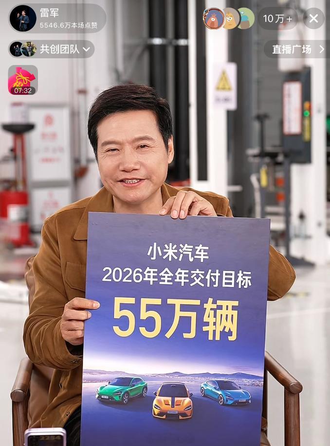 2026flag雷军问大家2026年flag雷总今年立的 3 个 flag:健身打卡 100 次学会叉车交付 55 万辆小米汽车最后一个其实是最容易实现的。