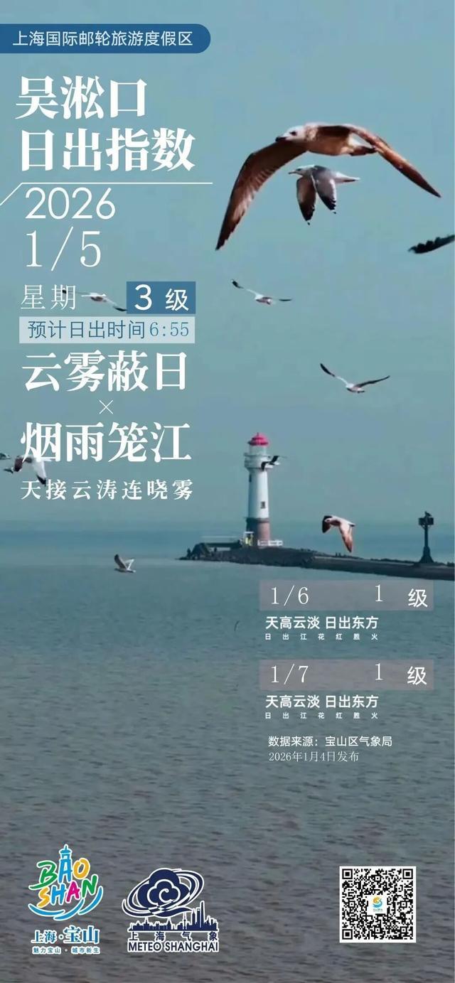 [吴淞口日出指数]1月5日3级云雾蔽日×烟雨笼江