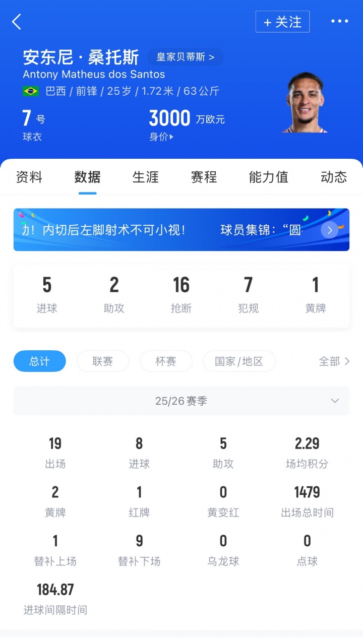 "但毫无疑问,安东尼的签约不仅是我在贝蒂斯时期,更是我整个职业生涯中最艰难的一次。在不久前,像曼联这样的大俱乐部花费1亿欧元签下了他,在贝蒂斯的六个月里表现卓越,重新被巴西国家队征召。当时还有其他大俱乐部在竞争,毫无疑问,签约很艰难。