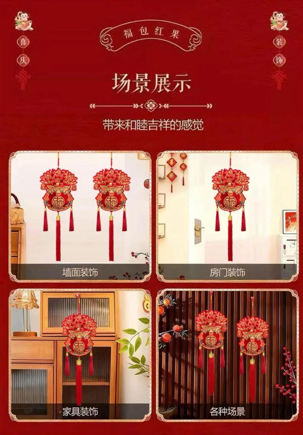 挂饰采用环保材料精心制作,质感细腻。边缘工整利落,红果造型饱满立体,福袋纹路清晰精致,每一处细节都彰显着匠心工艺,摸起来厚实有分量,高雅格调扑面而来。