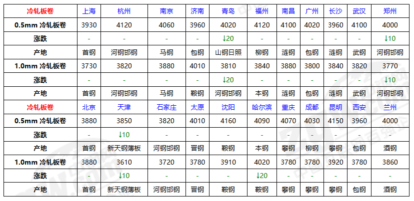 今日冷轧价格:偏弱运行