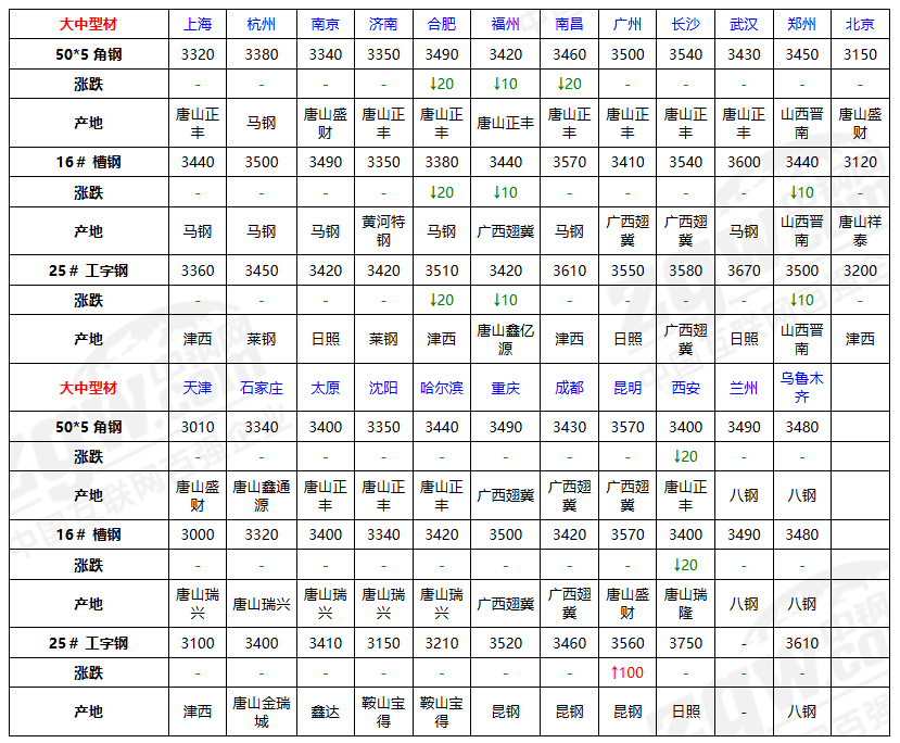 今日大中型材价格:个别下跌