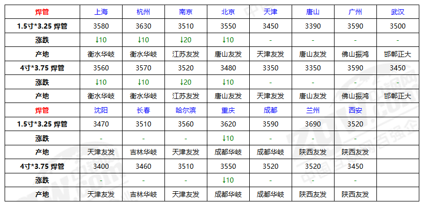 今日全国焊管价格跌10-20。原料带钢基本持稳,主流焊管厂稳价为主,现货价格有暗跌情况,但成交不佳,下游按需采货,近期价格震荡。预计明日焊管价格稳中偏弱。