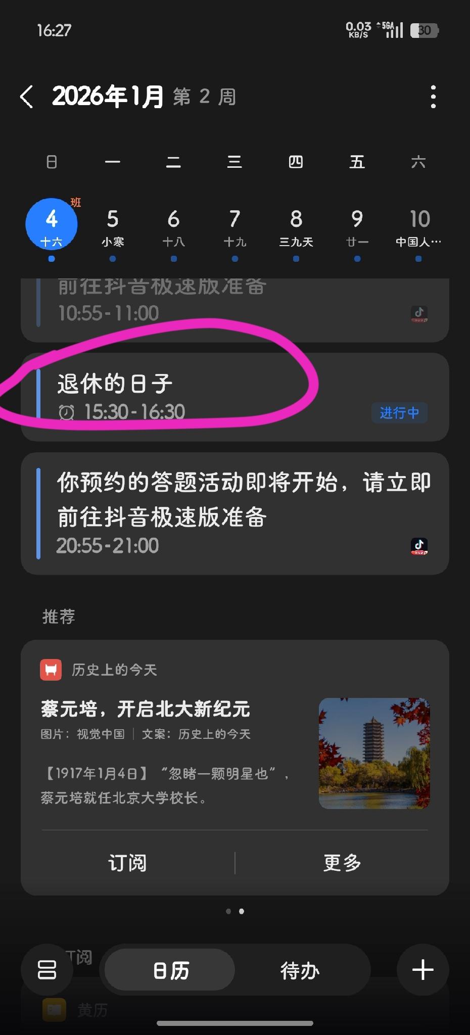 刚刚闹钟⏰提醒我今天是退休的日子,啥时候设定的这个时间点的闹钟,我早就忘了哈~[我想静静] 话说虽然今天是我55周岁的生日,不过我想等下半个月再去办理退休手续。 一方面婆婆的事情还没处理好,另一方面我要这个月养老金缴纳进去才正正好好15年工龄。 所以说不急的,慢慢来吧! 反正过年还早,事情一件件总归会处理好的,水到渠成顺其自然吧!
