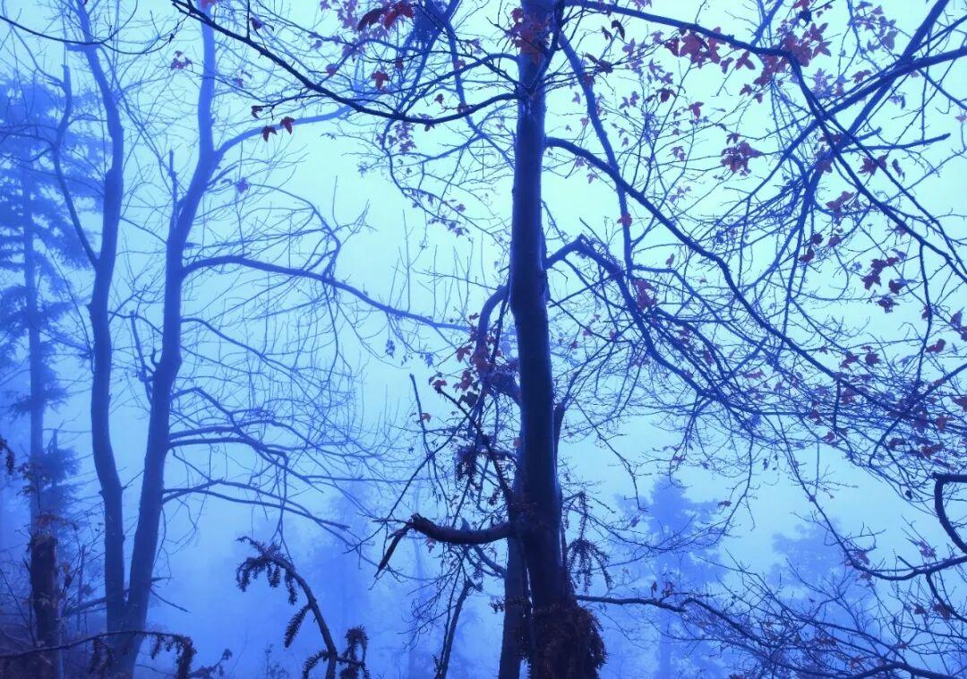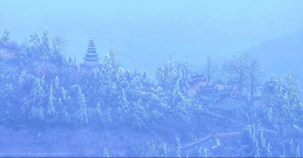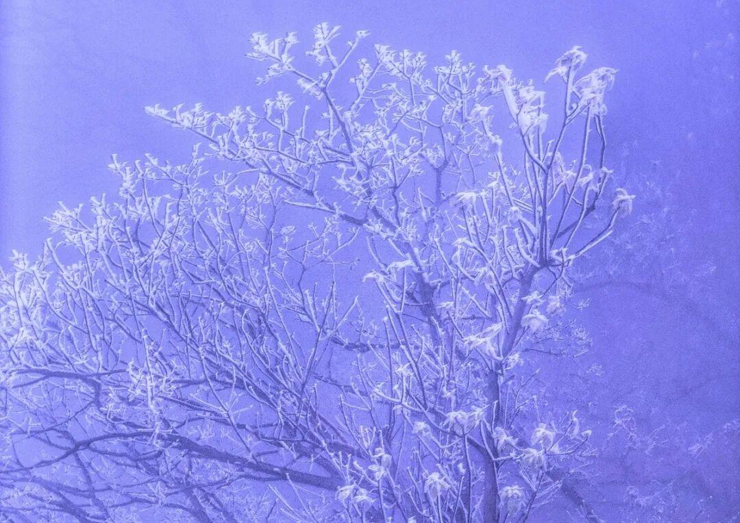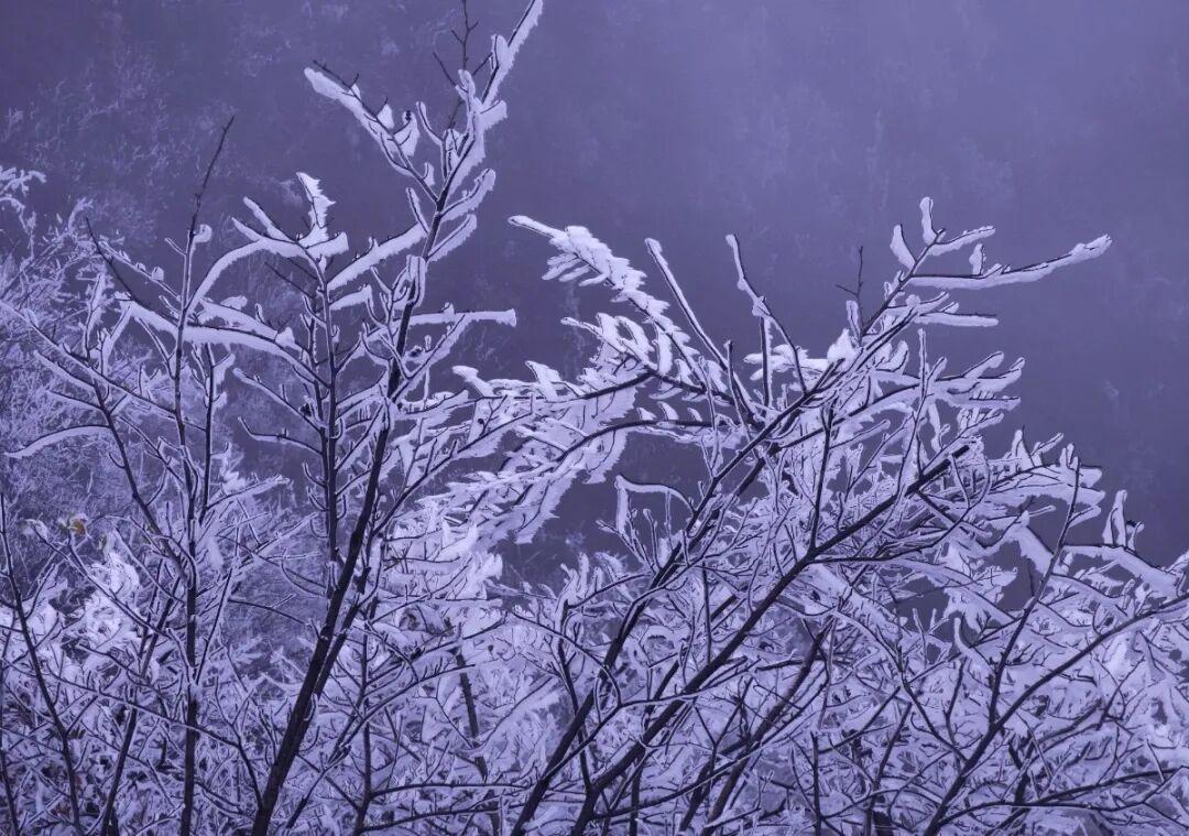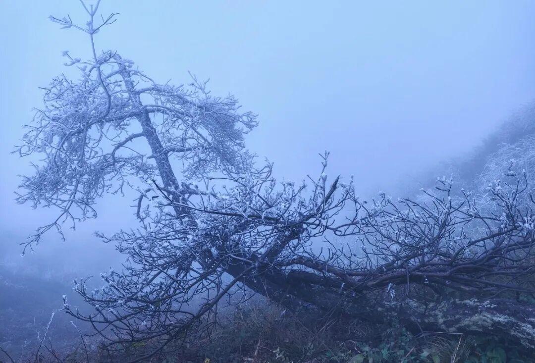 连绵的雾凇为山岭披上一袭皎洁绒衣