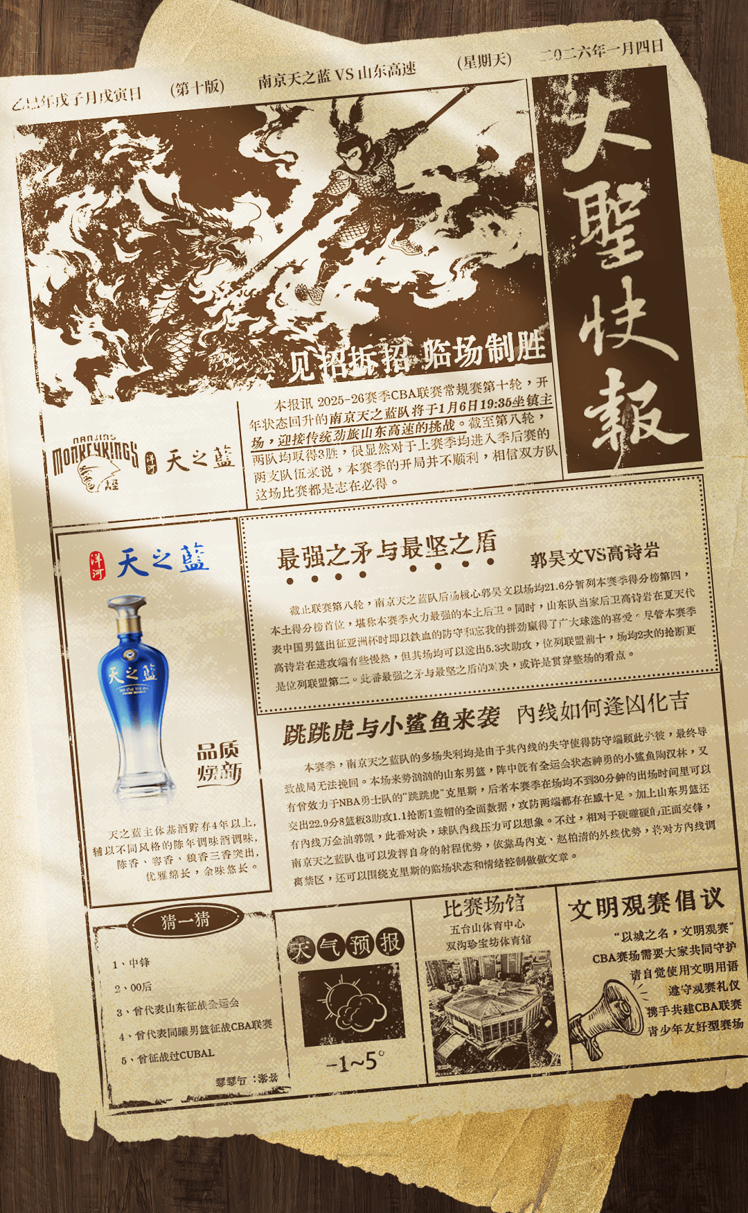 赛前,南京男篮官方分享海报预热比赛。