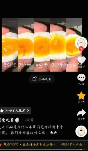煮鸡蛋能煮到全网百万点赞?这个主播让我看到了“较真”的力量 最近我刷到一个叫“爱吃蛋”的主播,给我看服了。他的视频特别简单,就是教你怎么煮鸡蛋,几分几秒是什么状态,说得清清楚楚。更神的是,别人发张切开鸡蛋的图给他,他瞄一眼就能告诉你:这是煮了6分30秒的效果。 一开始我也觉得,这不就是熟能生巧嘛。但后来我咂摸出味儿来了——在一个人人追热点、搞快钱的年头,能有人把“煮鸡蛋”这么一件小事,研究得这么透、这么细,这本身就是一种稀缺。 他火的不是鸡蛋,是那份把一件简单事做到极致的“笨功夫”。这背后是多少次的失败、记录和调整?想想我们自己,是不是总想找捷径,做两天没看到结果就想换赛道?可他告诉我们:真正的“捷径”,可能就是对一个看似不起眼的小事,死磕到底。 所以别再说找不到方向了。有时候,成功不是因为你选了多厉害的事,而是你在自己认准的那件小事上,愿意下多深的功夫。把事情做透,就是最好的护城河。 鸡蛋的学问 生活感悟