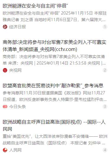 中国制裁美国20家军工企业和高管后,不到24小时,欧盟副主席里韦拉就怒批冯德莱恩对美国妥协,直言欧盟“跪久了站起不来”。 麻烦看官老爷们右上角点击一下“关注”,方便您进行讨论和分享,感谢您的支持! 2025 年 12 月 26 日,美国抛出的一则军售公告打破了台海地区的平静,其宣布对台实施高达 111 亿美元的军售计划,这一金额创下 1979 年以来美国对台单笔军售的最高纪录。此次军售清单针对性极强,包含 82 套 M142 “海马斯” 火箭炮、420 枚配套的 M57 “陆军战术导弹”、1700 架巡飞弹自杀无人机、2595 枚反坦克导弹以及 120 门 M109A7 “帕拉丁” 自行榴弹炮等装备,显然是想把台湾打造成 “刺猬岛”,阻挠中国统一进程。 面对美国这种严重违反一个中国原则、破坏台海和平稳定的行径,中国迅速采取反制措施。依据《中华人民共和国反外国制裁法》等相关法律,中国决定对参与此次对台军售的 13 家美国军工企业及相关高管实施制裁,具体措施包括禁止这些企业从事与中国有关的进出口活动、禁止在华新增投资,同时限制其高级管理人员入境及在华工作资格。这一系列制裁动作精准打击了美国军工复合体的利益,彰显了中国维护国家主权和领土完整的坚定决心,也让国际社会看到了中国说到做到的强硬立场。 令人意想不到的是,中国制裁措施落地后不到 24 小时,欧盟内部就掀起了一场激烈的政治风波。欧盟委员会执行副主席特雷莎・里韦拉公开怒批欧盟委员会主席冯德莱恩,指责其长期以来对美国一味妥协退让,甚至直言 “欧盟跪久了已经站不起来”。里韦拉的这番言论并非空穴来风,而是戳中了欧盟内部积压已久的不满情绪,也让美欧之间的裂痕彻底摆到了台面上。 这场风波的背后,是冯德莱恩今年 7 月与美国特朗普政府达成的一项备受争议的协议。当时冯德莱恩未充分征求欧盟 27 个成员国意见,就擅自与特朗普敲定框架协议,承诺欧盟将向美国增加 6000 亿美元投资,并在未来数年购买价值 7500 亿美元的美国能源产品。然而这份看似 “互利” 的协议,最终却成了欧盟的单方面让利 —— 美国不仅没有取消对欧盟钢铁 50% 的惩罚性关税,连欧盟迫切希望降低的汽车关税也未作出任何让步,让欧盟的妥协换来了一场空。 事实上,欧盟对美国的妥协早已不是第一次,且付出的代价越来越沉重。在能源领域,自乌克兰危机后欧盟大幅削减对俄能源依赖以来,美国迅速填补了这一市场空白,如今已成为欧盟最大的液化天然气供应国,占欧盟进口液化天然气的 55%。但美国液化天然气的价格远高于全球均价,过去三年欧盟仅进口美国液化天然气就花费了 1000 亿欧元,每年要比购买其他来源的能源多支付数百亿欧元成本。更让欧盟各国不满的是,美国能源供应稳定性堪忧,受自然灾害和国内政策变动影响,欧盟的能源安全时刻面临风险。 在防务领域,欧盟对美国的依赖更是深不见底。目前欧盟 27 国 75% 的防务预算都流向了美国军火商,而在今年 6 月的北约峰会上,冯德莱恩还代表欧盟同意,到 2035 年前将欧盟国防开支提升至 GDP 的 5%,这意味着欧盟每年的军事支出将超过 9000 亿欧元,届时对美国军火的采购可能还会进一步增加。这种过度依赖让欧盟在安全事务上失去了自主权,彻底沦为美国的 “提款机”。 里韦拉的公开炮轰,其实是欧盟内部对美不满情绪的集中爆发。近期法德英三国已同步发声,谴责美国的单边主义行径。德国经济部长哈贝克直接将美国的做法定性为 “经济勒索”,法国总统马克龙更是直言不讳地表示,不能再想当然地认为美国利益与欧洲利益一致。这些表态背后,是欧洲经济正在承受的巨大压力 —— 美国的关税政策让欧盟钢铁出口每年损失高达 370 万吨,德国经济研究所测算,若美欧贸易战持续升级,到 2028 年德国 GDP 将面临超 1800 亿欧元的损失。 从历史上看,美欧之间的裂痕早已存在。2022 年美国推出《通胀削减法案》,通过大规模补贴吸引欧洲企业赴美投资,引发欧洲多国强烈不满;2025 年美国重拾 “美国优先” 政策,对欧盟加征钢铁和铝关税,进一步加剧了双方矛盾。而冯德莱恩的一系列 “跪美” 操作,不仅没有为欧盟争取到任何实际利益,反而让欧洲的战略自主空间被不断压缩,经济和安全利益都受到严重损害。 信源:中华人民共和国国防部《钧声丨“最大军售”成不了“台独”救命稻草》