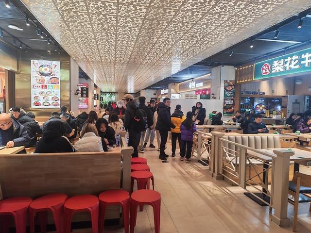 1月4日中午正值用餐高峰期,万象城负一层的Lifete食集由于汇集多个快餐连锁品牌,一眼望去显得格外热闹,不少年轻人在此排队就餐,其中不乏乘坐地铁到此品尝美味的白领们。