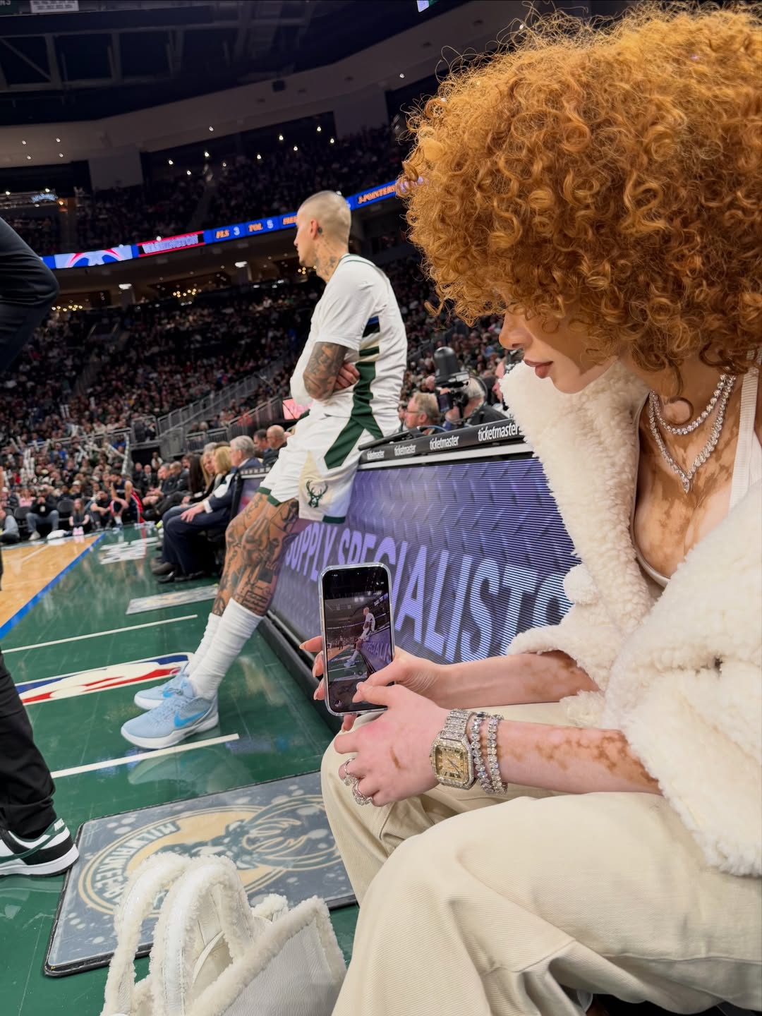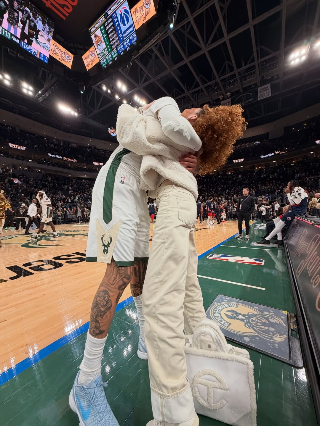 虎扑01月04日讯雄鹿球员凯尔-库兹马的未婚妻更新Ins,晒出一组自己到场边观战的照片与球迷分享。