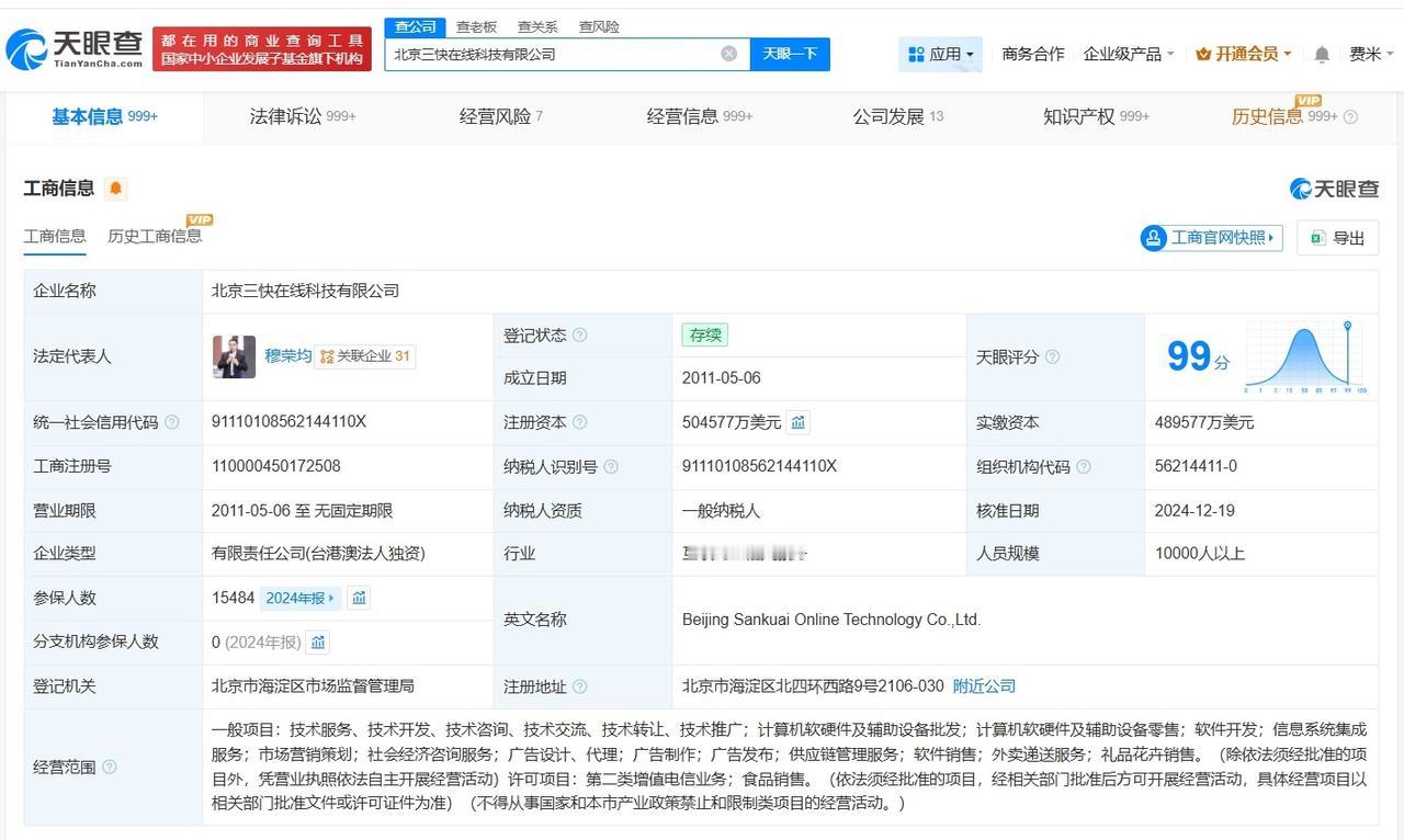 美团被冻结325万股权 美团所持325万股权被冻结 天眼查天眼风险信息显示,近日,北京三快在线科技有限公司新增一则股权冻结信息,股权所在企业为北京三快信息科技有限公司,冻结股权数额325万人民币,冻结期限为3年,执行法院为北京市海淀区人民法院。 北京三快在线科技有限公司成立于2011年5月,法定代表人为穆荣均,注册资本约50.5亿美元,经营范围包括计算机软硬件及辅助设备批发、计算机软硬件及辅助设备零售、信息系统集成服务等。股东信息显示,该公司由美团香港有限公司全资持股。 天眼查信息: