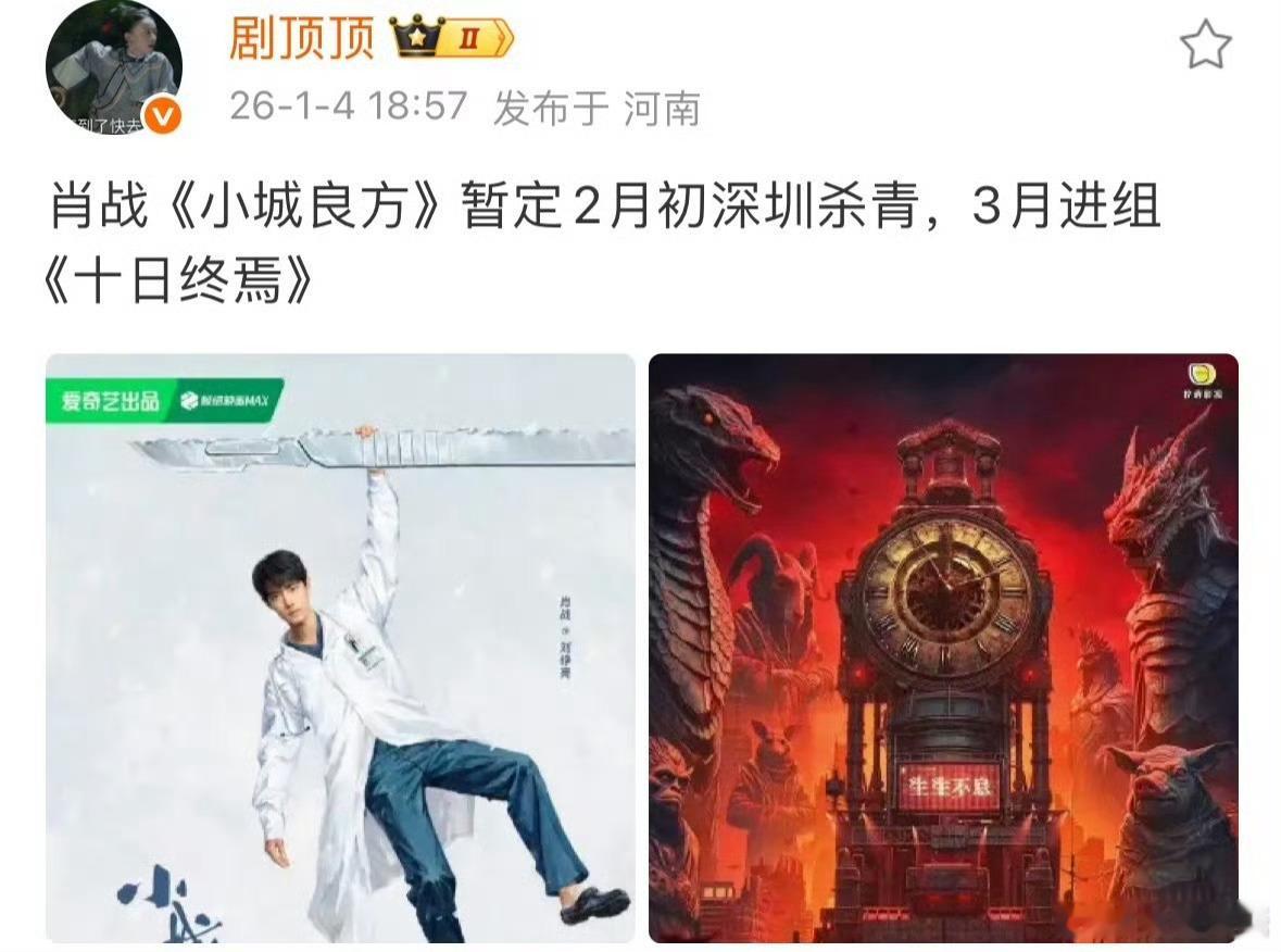 肖战2月杀青3月进组肖战小城良方暂定2月初杀青 事业粉狂喜,《小城量方》拍着已进