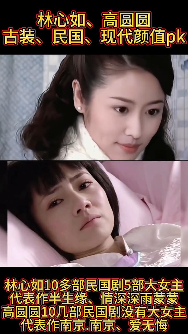 林心如、高圆圆古装、民国、现代颜值pk。 ·薛采月:林心如30多部古装,5部大女主,经典角色紫薇、窦漪房、建宁公主等。高圆圆10多部古装没有大女主,经典角色周芷若、柳生飘絮等。 ·薛采月:林心如50多部现代剧5部大女主,代表作半生缘、情深深雨蒙蒙。高圆圆10几部民国剧没有大女主,代表作南京、南京、爱无悔。林青霞60多部现代剧没有大女主,代表作单身男女、咱们结婚吧等。