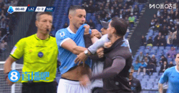 第81分钟,拉齐奥球员诺斯林吃到第二张黄牌被罚下。↓