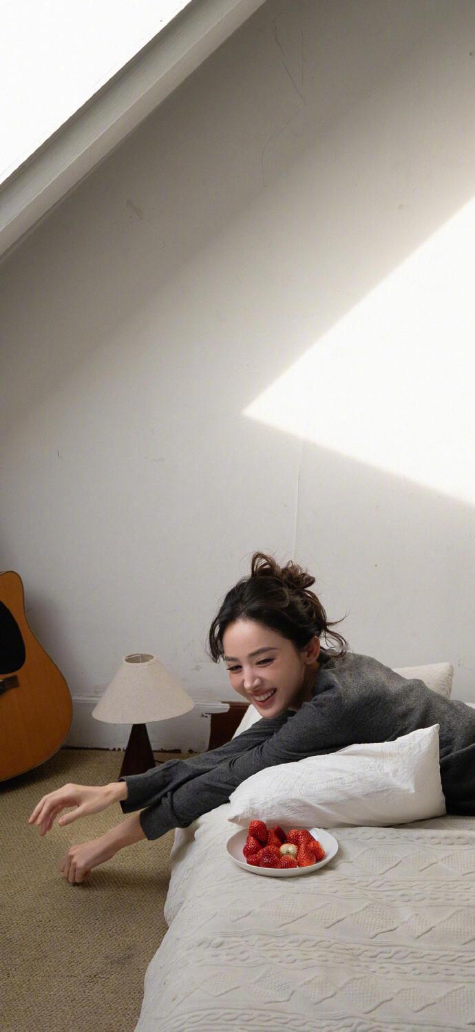 古力娜扎 灰蓝薄纱垂落出玉背的弧度,V领裁开的温柔里,红唇轻抿便藏住了半分星