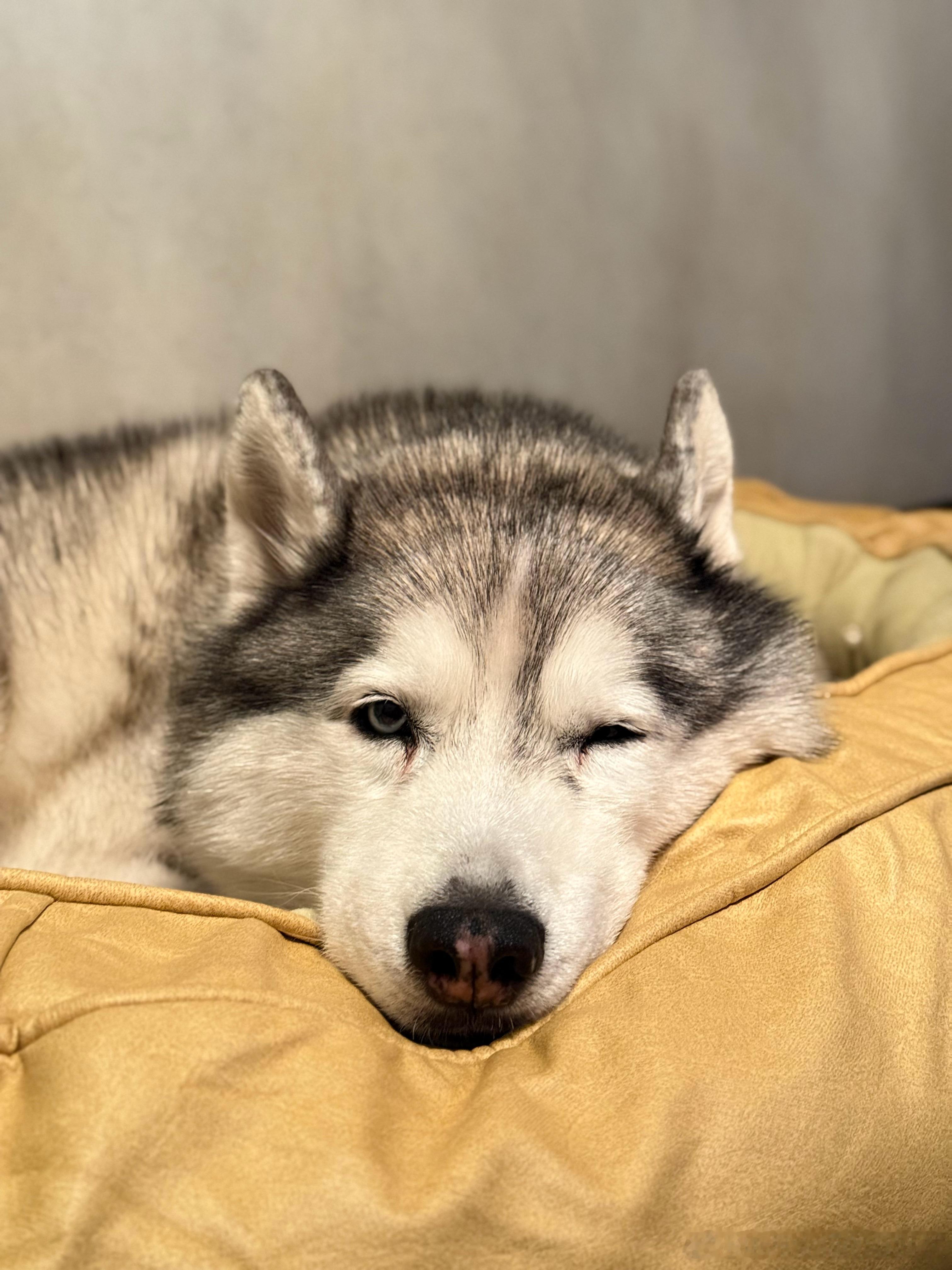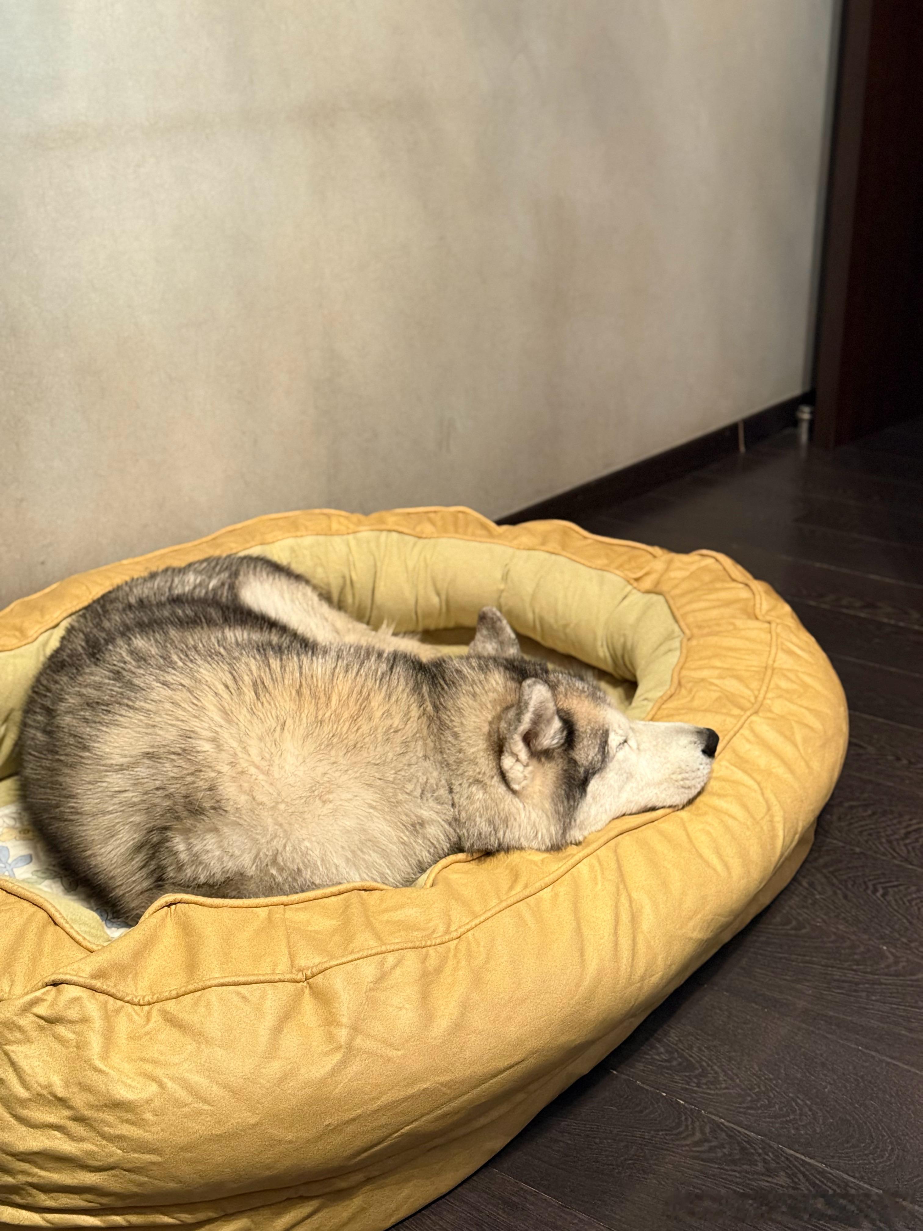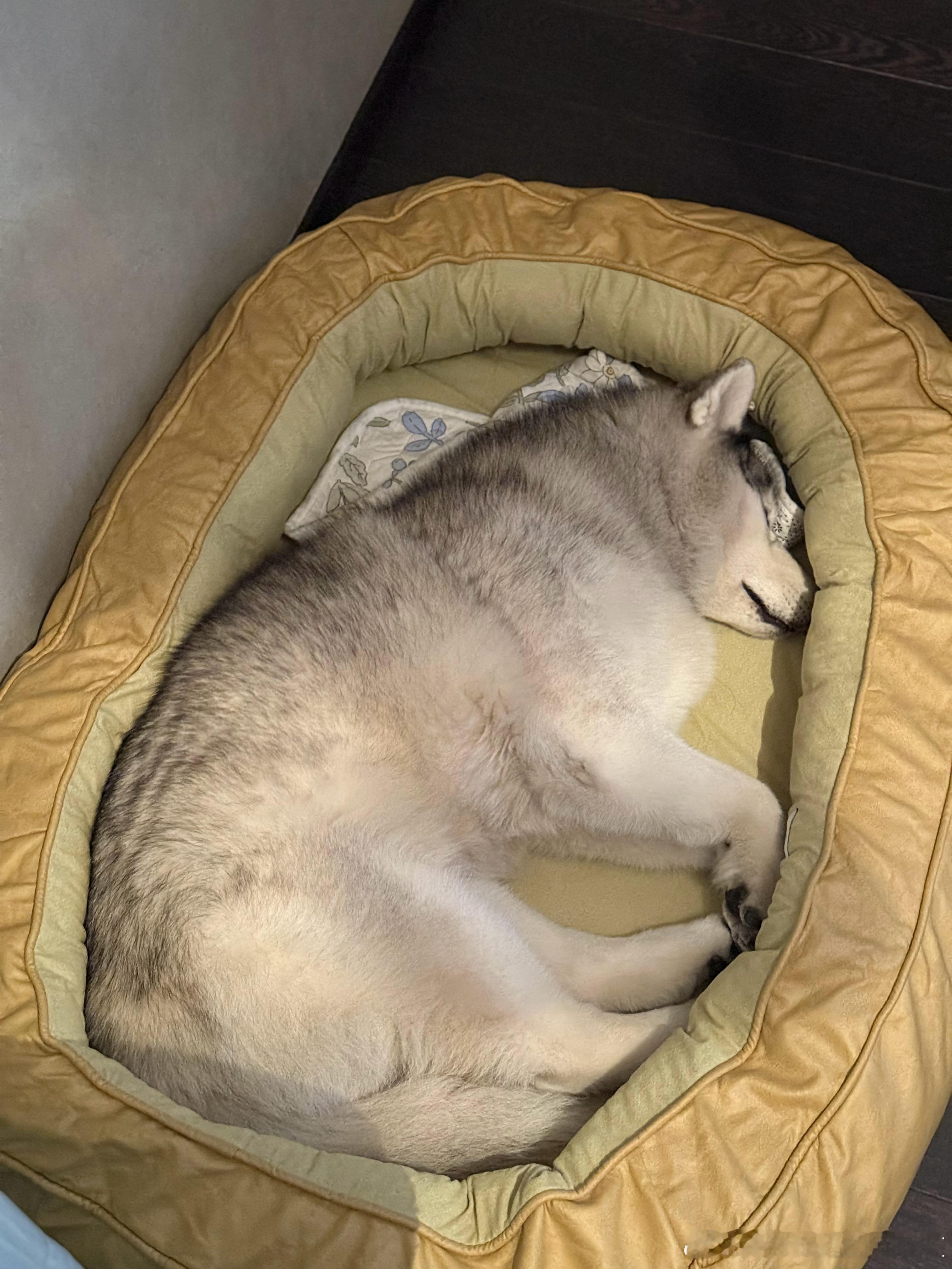 哈士奇 灰灰小狗的新窝也是睡上了,感谢好朋狗的馈赠