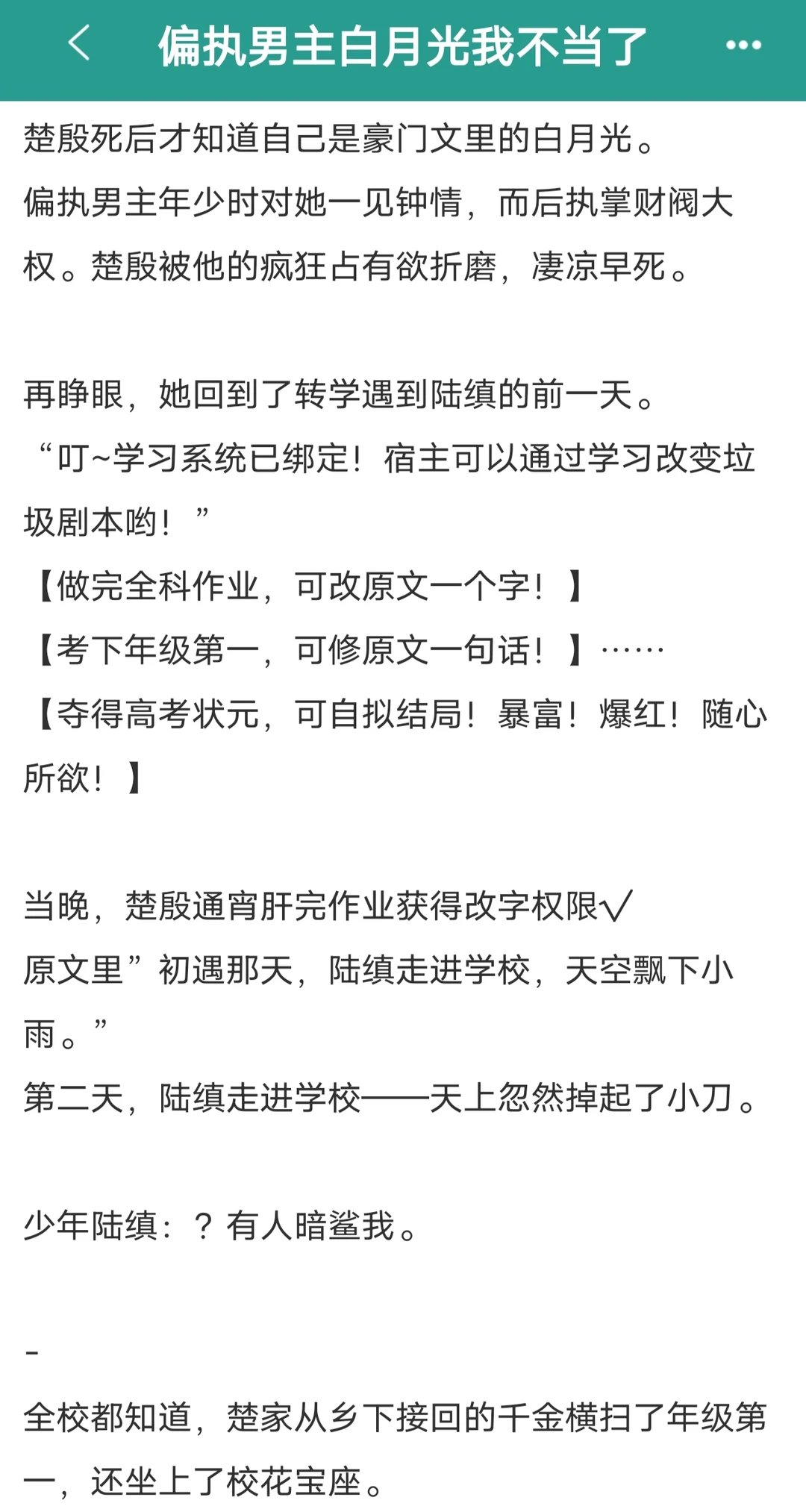 看赵老师的小说,每次都笑到不行 偏执白月光那本还看了不下两次。 偏执男主的白月光我不当了(天上下小刀) 和冷漠老公互关后的豪门生活(身体互关) 我把霸总吵癫了 绑定CP系统在恋综爆红 稳住黑化的反派前夫(真仙子治愈反派)