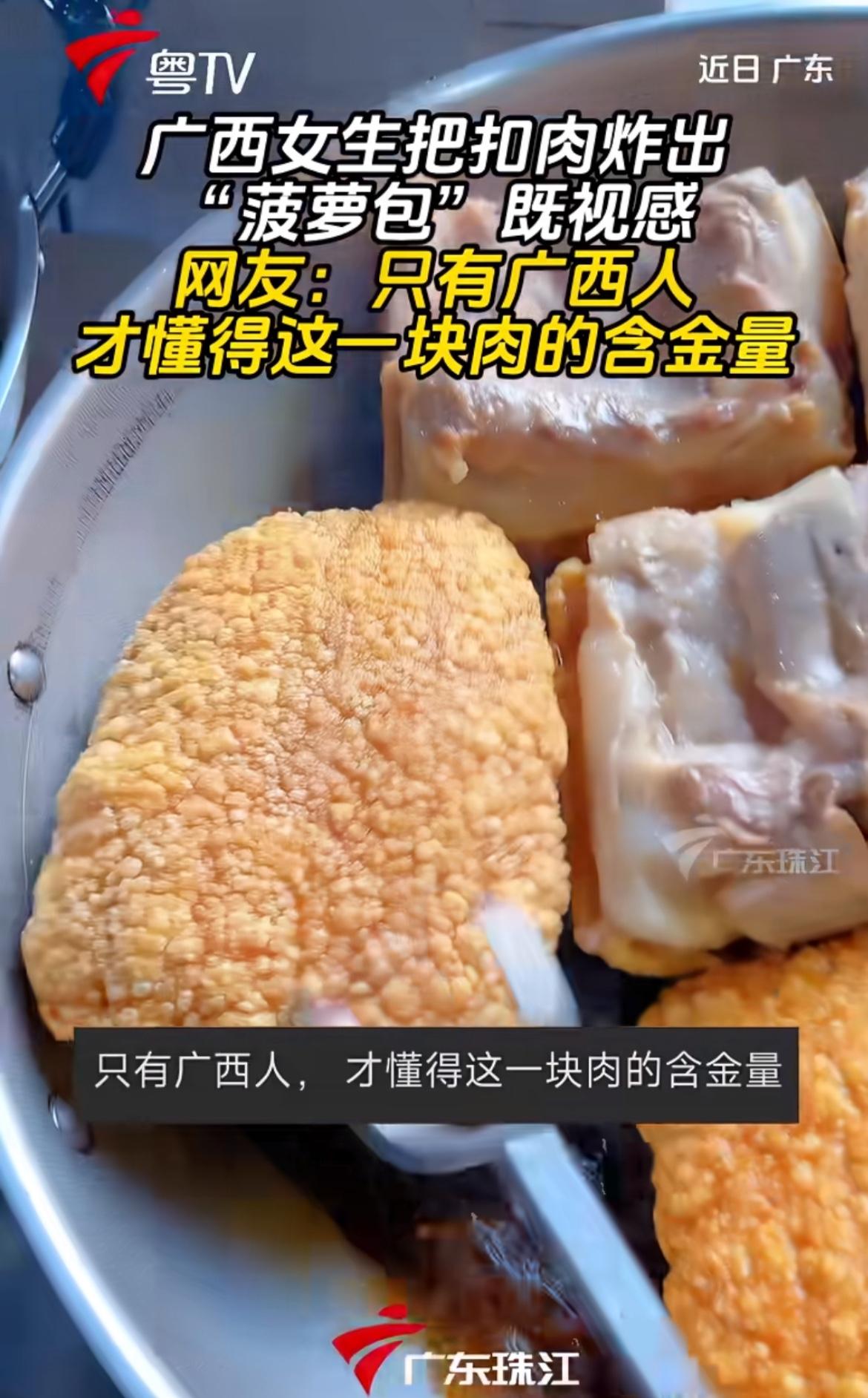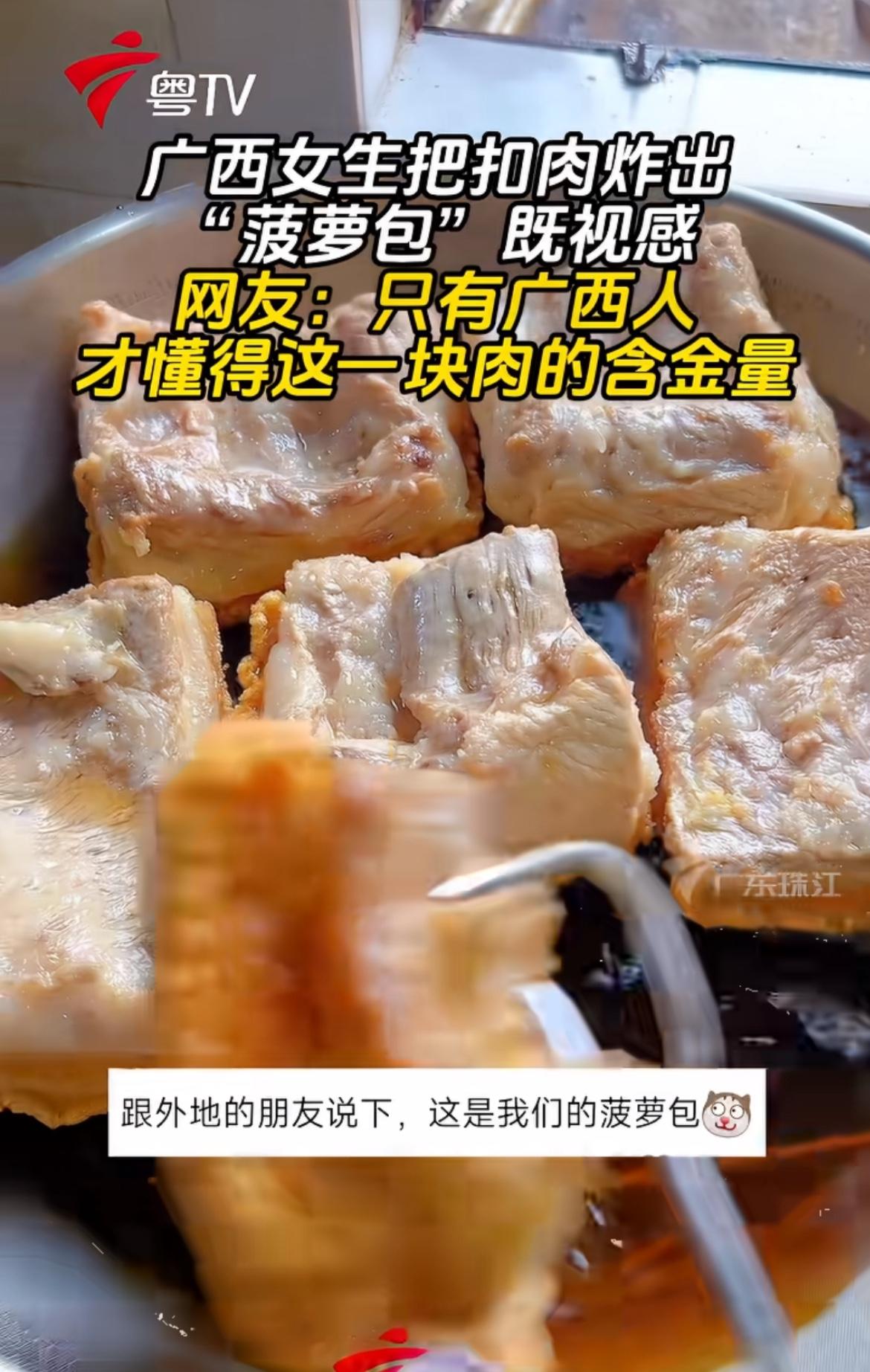 广西女生把扣肉炸出“菠萝包”,这操作太绝了!广西扣肉可不简单,“无扣不成席”这话可不是开玩笑。之前看到网友讨论在广西“打翻扣肉”严不严重,我还纳闷,了解制作流程后才知道确实麻烦。 扣肉要经过多道工序,做出来色泽红亮、肥而不腻。炸成“菠萝包”的样子,估计口感更有层次。在广西,扣肉意义不只是美食本身,承载着当地的饮食文化。网友说只有广西人才懂这美味,确实,独特做法和风味,是广西独有的舌尖记忆。没吃过的真得尝尝!