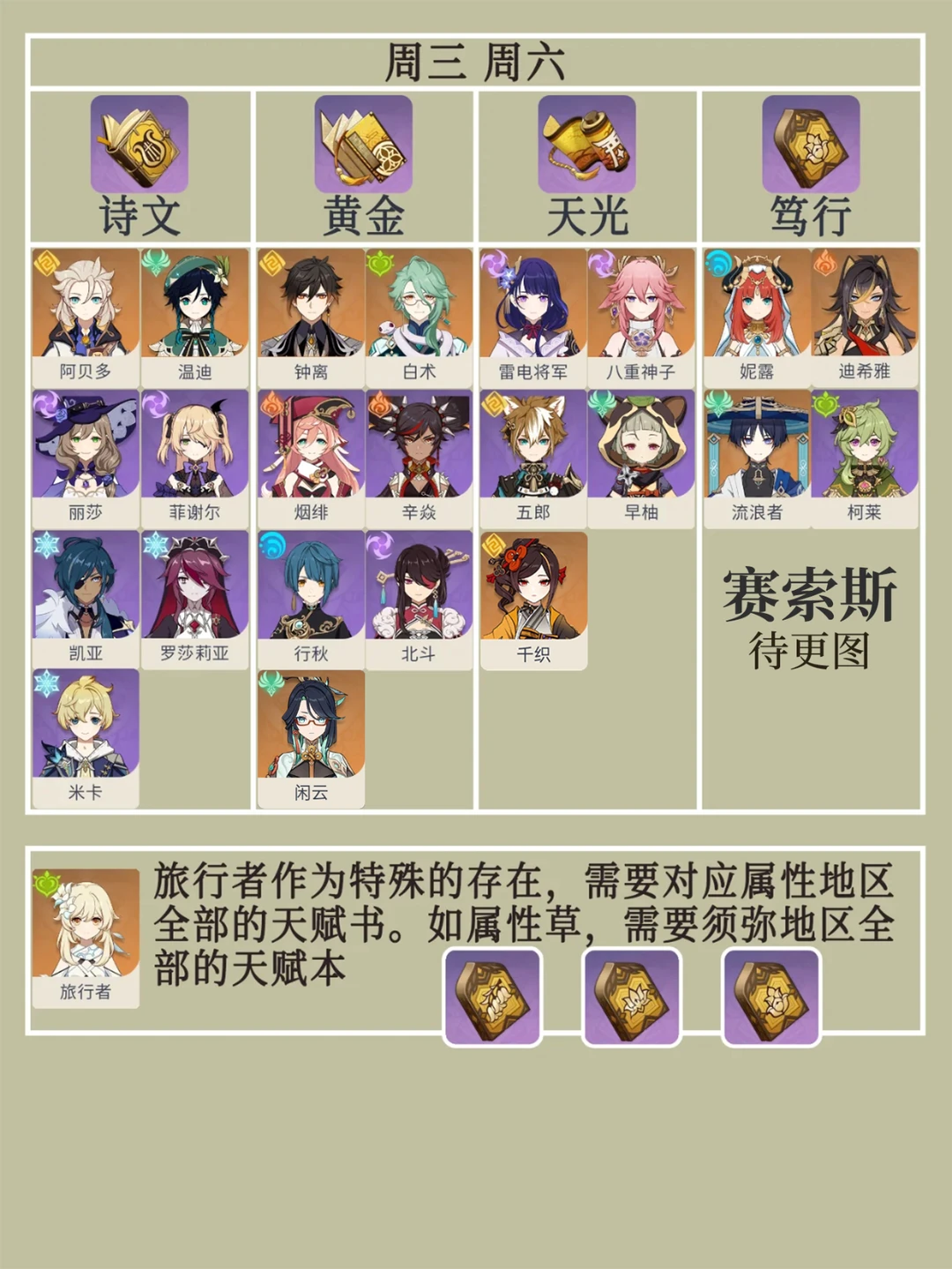 4.7版本为止的全角色天赋书对应表请看这里! 精通移涌活动天赋书就刷这个吧[哇R] 收藏一下!4.7版本希格雯、克洛琳德和赛索斯的天赋书也可以开始准备啦[赞R]