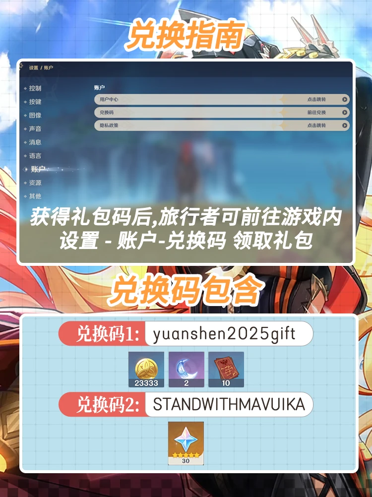 新增5.2版本国际服兑换码,可获30原石+2月亮~ 兑换码: yuanshen2025gift STANDWITHMAVUIKA