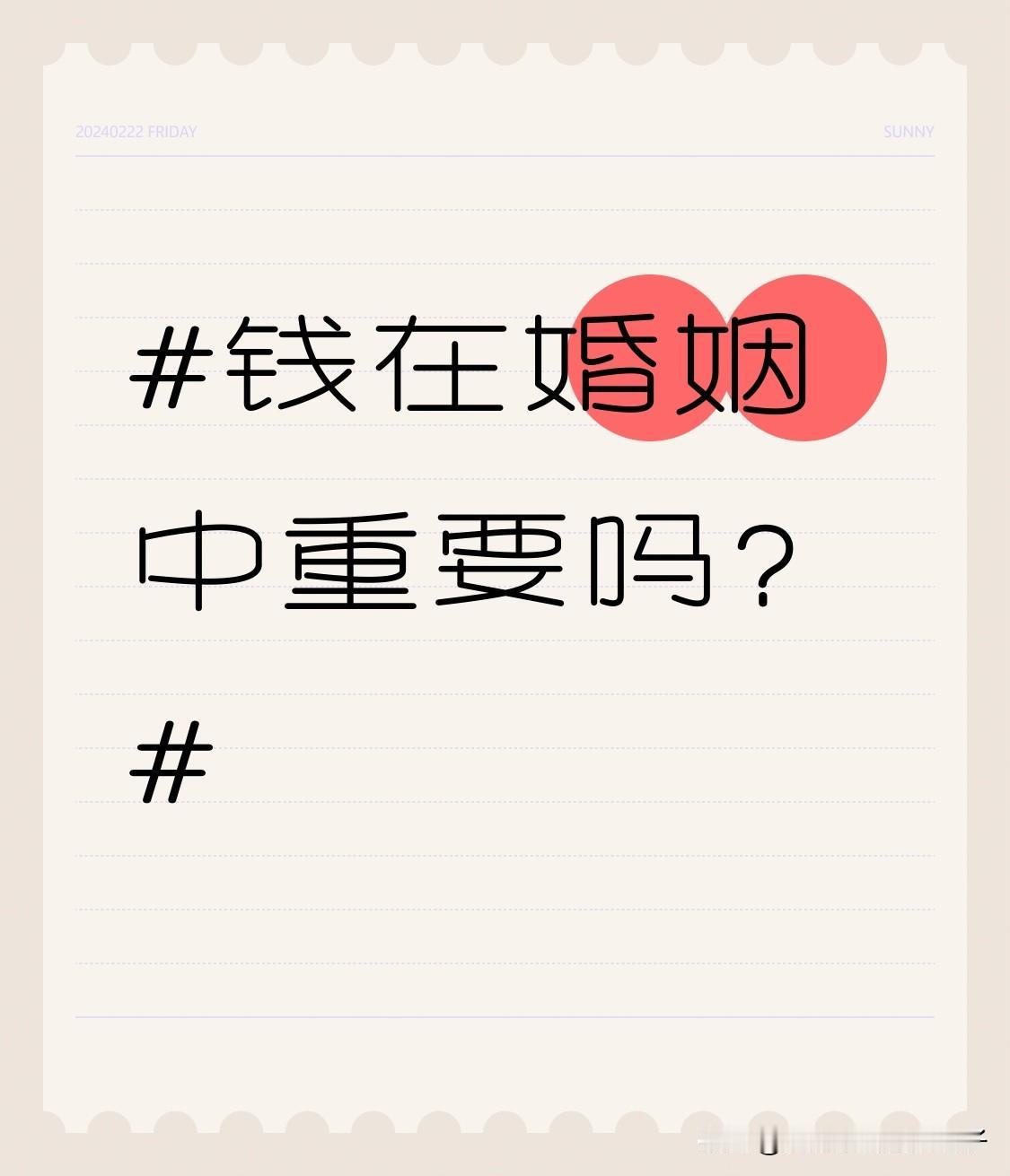 钱在婚姻中重要吗?这问题就像哈姆雷特的“生存还是毁灭”。 有人觉得钱是婚姻的盾牌。恋爱时能在出租屋吃泡面、骑电动车兜风,可婚姻里,孩子半夜发烧、父母生病,没钱就只能干着急。没钱还不敢生孩子、不敢生病、不敢换工作,多少夫妻因钱吵得面目全非。 但也不能只盯着钱。去年数据显示,年轻人更看重婚姻中的理解和尊重。金钱能解决眼前难题,却填不了夫妻间的距离。真正持久的婚姻,靠的是理解、尊重和陪伴。所以啊,钱重要,但不是婚姻幸福的唯一密码。