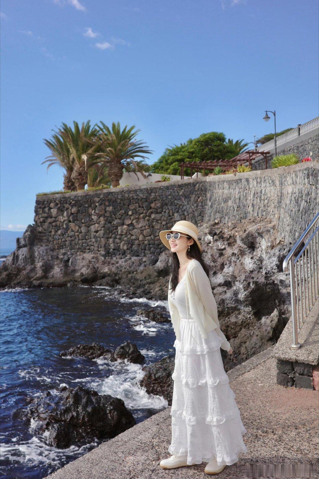 景甜白到发光的旅游照姐姐这身白裙子是偷了阳光穿身上吧, 走在海边整个人都在发光,回眸一笑我屏幕都亮了三度!