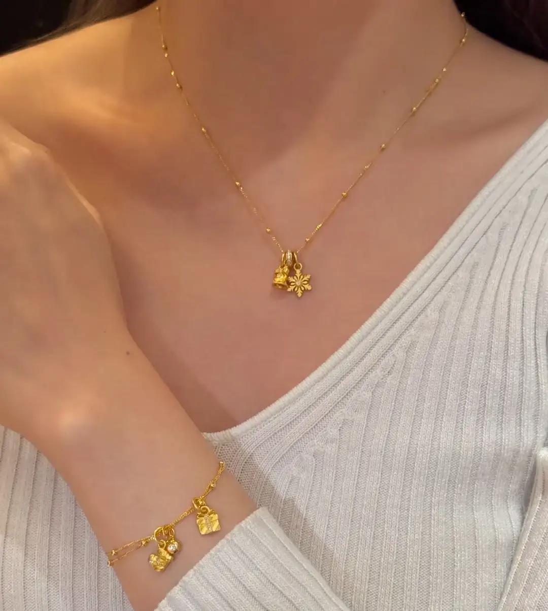 金价飙到600元/克,1克小金豆也能戴出大牌感 周大福悄悄把吊坠缩到1克,蝴蝶、别针、四美三款,叠两条链子就能拍小红书。 我上周去柜台,柜姐直接递上“玲珑金”样品,硬度够,指甲刮不出痕。 当天国际金价2380美元,她却说:买小克重,先过搭配瘾,真跌也亏不多。 回来翻了数据,小红书“黄金叠戴”笔记一年涨120%,九成晒的是mini款。 老凤祥、周生生跟着出同款,但没联名IP,周大福搭上迪士尼,流量稳吃。 想保值?记得选带钢印999,售后免费换款,别去路边金店。 金价太高不敢下手?先买1克戴着玩,拍照发圈,点赞比基金收益来得快。